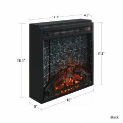 Get the fireplace effect without the maintenance with the Avenue Greene 18″ x 18″ Electric Fireplace Insert. Β The insert features a realistic flame effect that can be used with or without heat so you can keep the ambiance even in the warm summer months. Use the remote or touch panel to adjust the flame settings and heat settings to keep your room comfortable at all times. Β The insert can heat a room up to 400 sq. ft. and plugs into a standard 120V outlet. The LED light source boasts up to 50,000 hours of life so you can enjoy the flame effect for years to come. Β Overall measurements: 18″ W x 5″ D x 18.1″ H. Β Unit weight: 15 lbs.