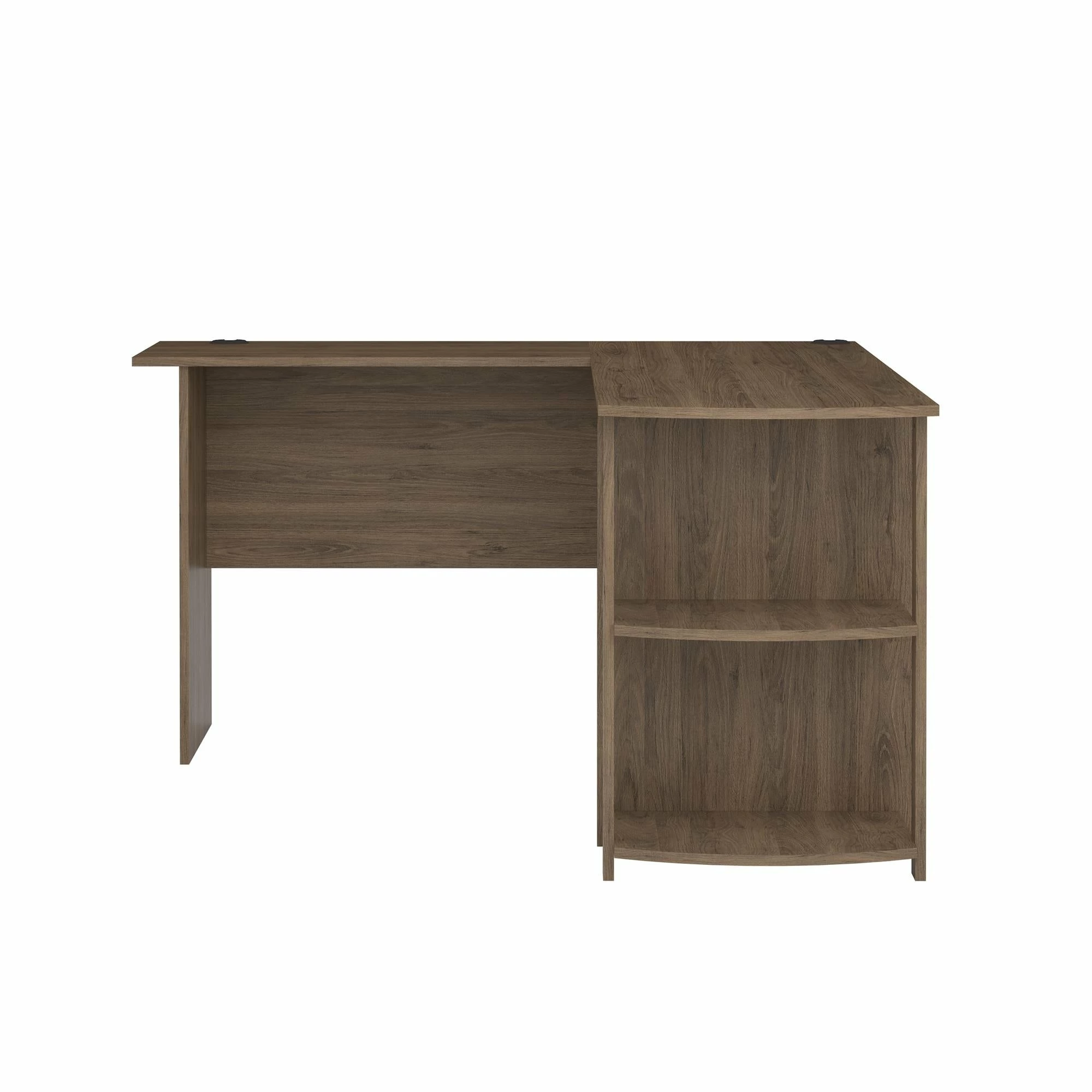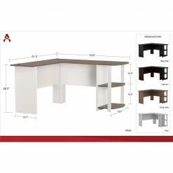 Create the perfect office space with the Avenue Greene Abbott L-Shaped Desk with Bookshelves. This Desk fits snuggly in a corner to maximize your home office space. The large desk top surface provides plenty of room for your monitor or laptop, as well as papers and other essential office supplies. The L-Shaped Desk even has 2 grommets built into the Desk to organize and manage your cords. Two open shelves on the side of the desk provide a perfect home for your binders and books, but keeps them within easy reach. This Desk measures to be 28.31″H x 51.34″W x 53.62″D and is constructed of laminated MDF and particleboard with a woodgrain finish. The Avenue Greene Abbott L-Shaped Desk with Bookshelves requires assembly upon delivery.