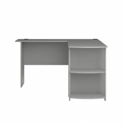 - This Desk fits perfectly in a corner or up against any wall and features a large top surface, extra side storage and grommet holes to keep your cords tangle free