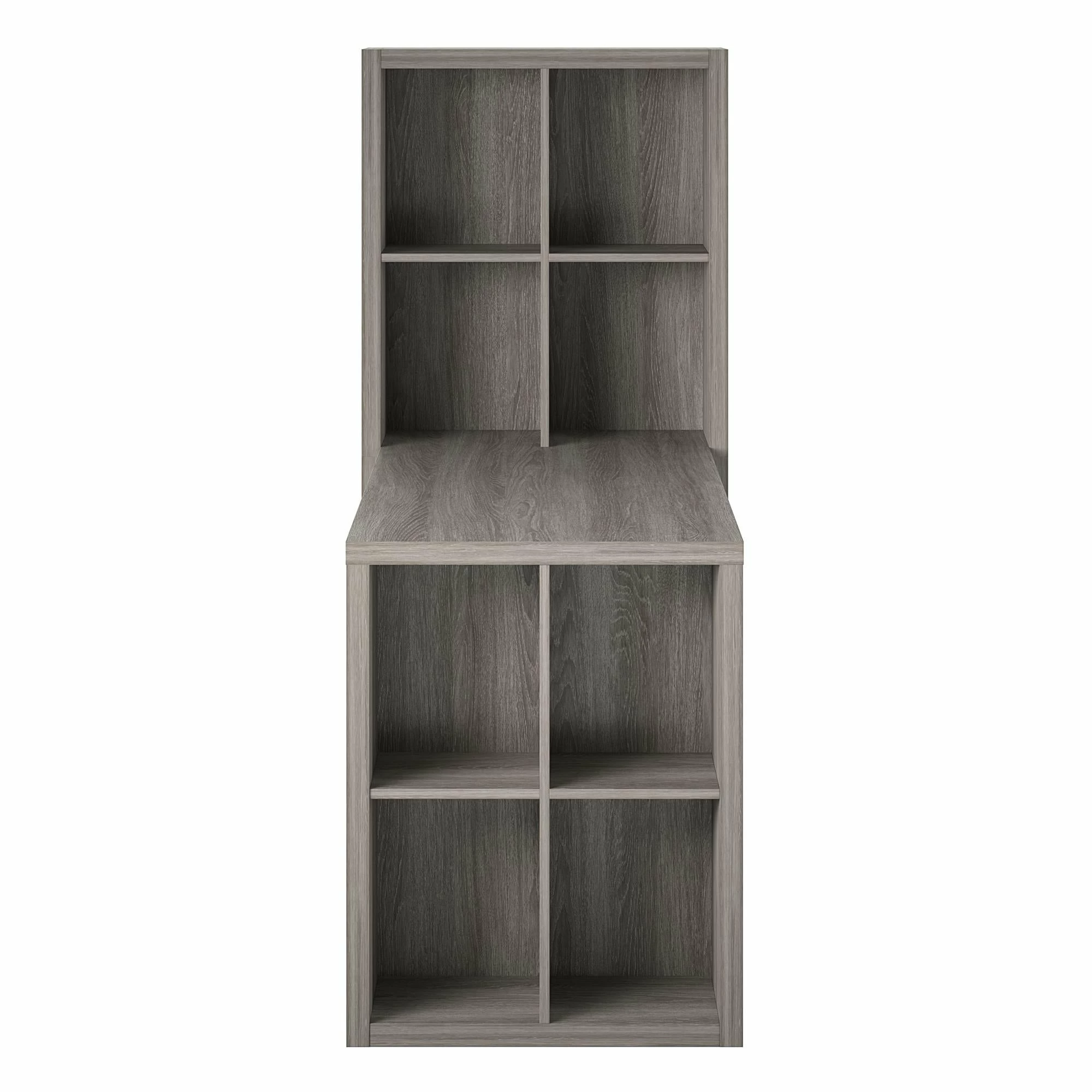 - Weight Capacities: Desktop: 80 lbs. Cubbies above desktop (x2): 10 lbs. each. Back cubbies below desktop (x4): 15 lbs. each Front cubbies below desktop: 10 lbs. each top (x2) and 15 lbs. each bottom (x2)