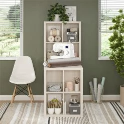Far superior to your typical work desk, the Avenue Greene Acorn Ridge Hobby Desk not only has a large work surface, but it also offers plenty of storage space to keep any room organized. The 12 storage cubbies provide plenty of space to store books, binders and craft supplies. Whether you’re using this desk in your home office or your craft space, you’ll love its unique design and exceptional features. This Desk keeps all your essentials within arm’s reach, but also keeps your work space clutter free. Β The finish seamlessly blends with any decor and the study particleboard build makes this desk both affordable and dependable. The Avenue Greene Acorn Ridge Hobby Desk ships in a box and requires assembly. Once assembled the desk measures to be 58 3/8″h x 47 2/5″w x 26 3/8″d.