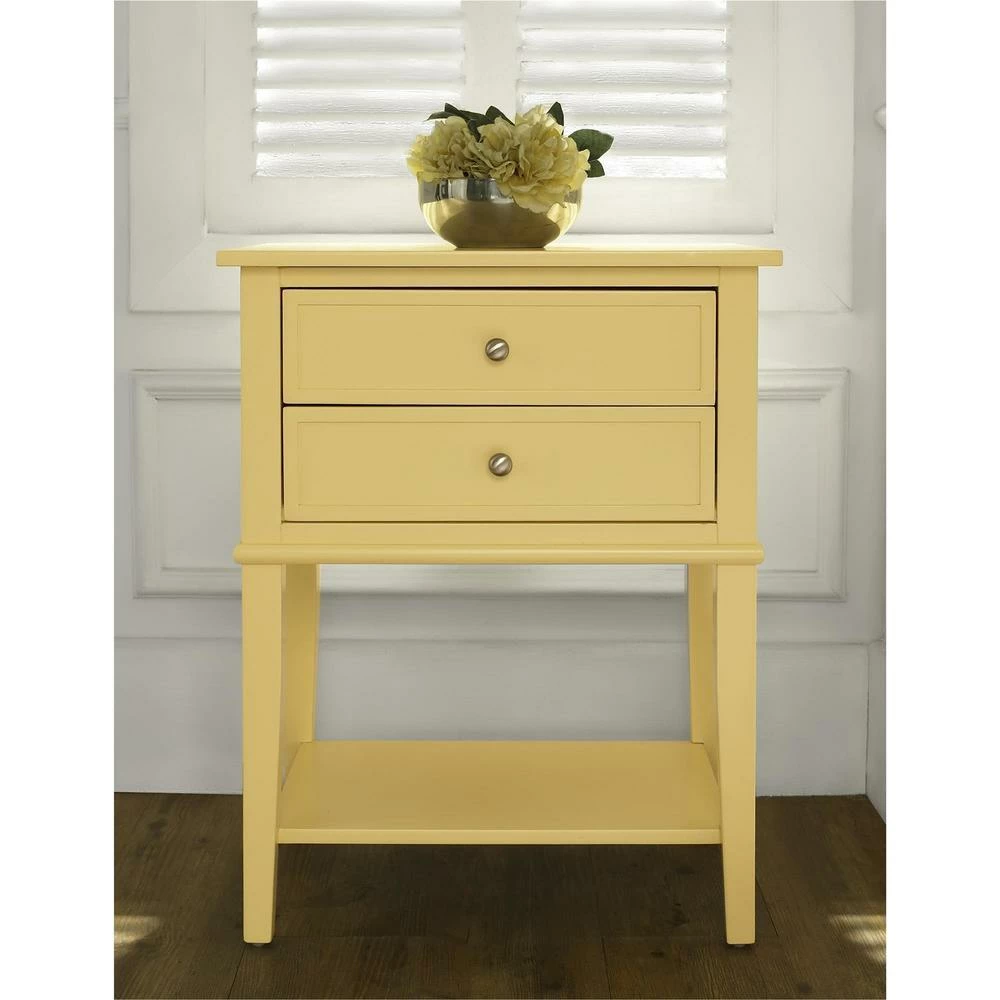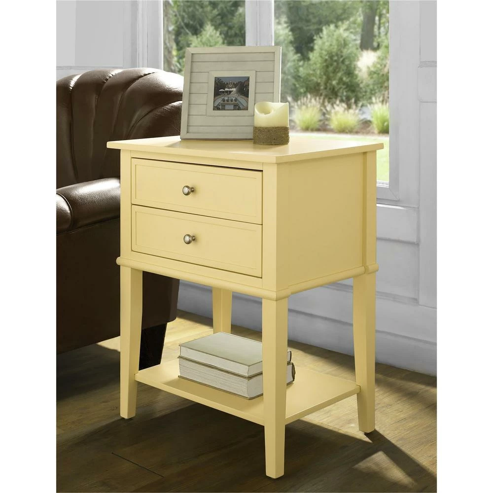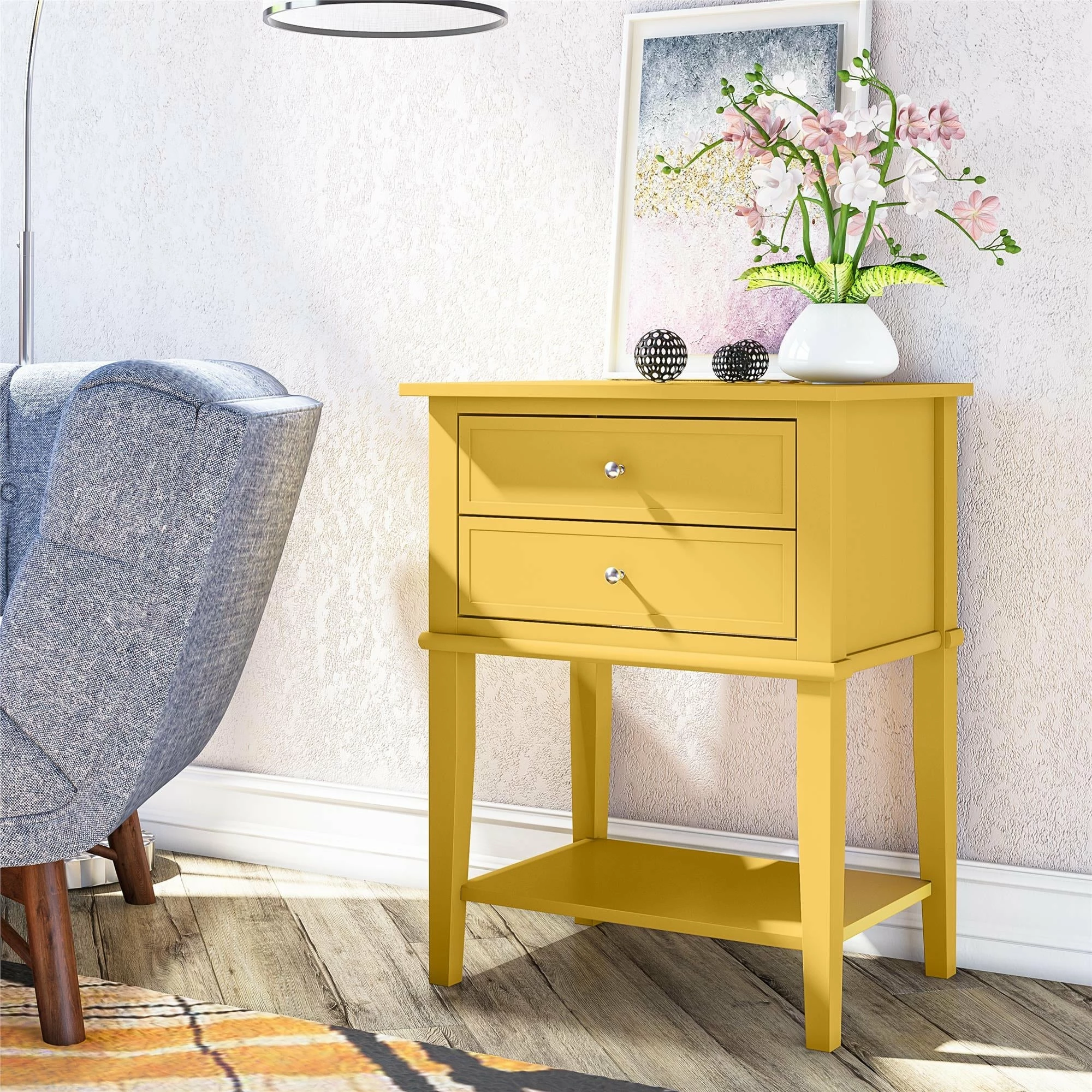 Curate a charming little space perfect for tucking away some treasures with this distinctive accent table. A painted finish lends a homespun touch in your choice of eye-catching colors. Two drawers allow for storage of necessities, and the small top and lower shelf lend the perfect place for artful display.