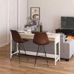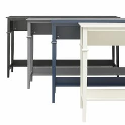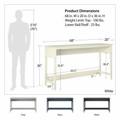 Add additional seating to your living room or family room with a gorgeous and functional Sofa Table. ย Constructed from durable painted MDF, this Console Sofa Table is finished on all sides and available in multiple eye-pleasing finishes to match most any dรฉcor. ย The Sofa Table can also be used as a desk or homework station for you or your kids to conveniently work or learn from home. You can also spruce up your entryway and add a space to put keys, mail, or decorations as you walk in the door. The versatile design lends to endless possibilities. Complete the look with the entire collection and coordinating pieces. (each sold separately) The Sofa Table ships flat to your door and requires assembly upon opening. Two adults are recommended to assemble. Once assembled, the Sofa Table measures to be 68″ W x 20″ D x 36″ H.