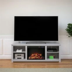 - Get the fireplace feel without all of the maintenance with the Avenue Greene Barrown Downs TV Console with Fireplace for TVs up to 60″ wide or 95 lbs.