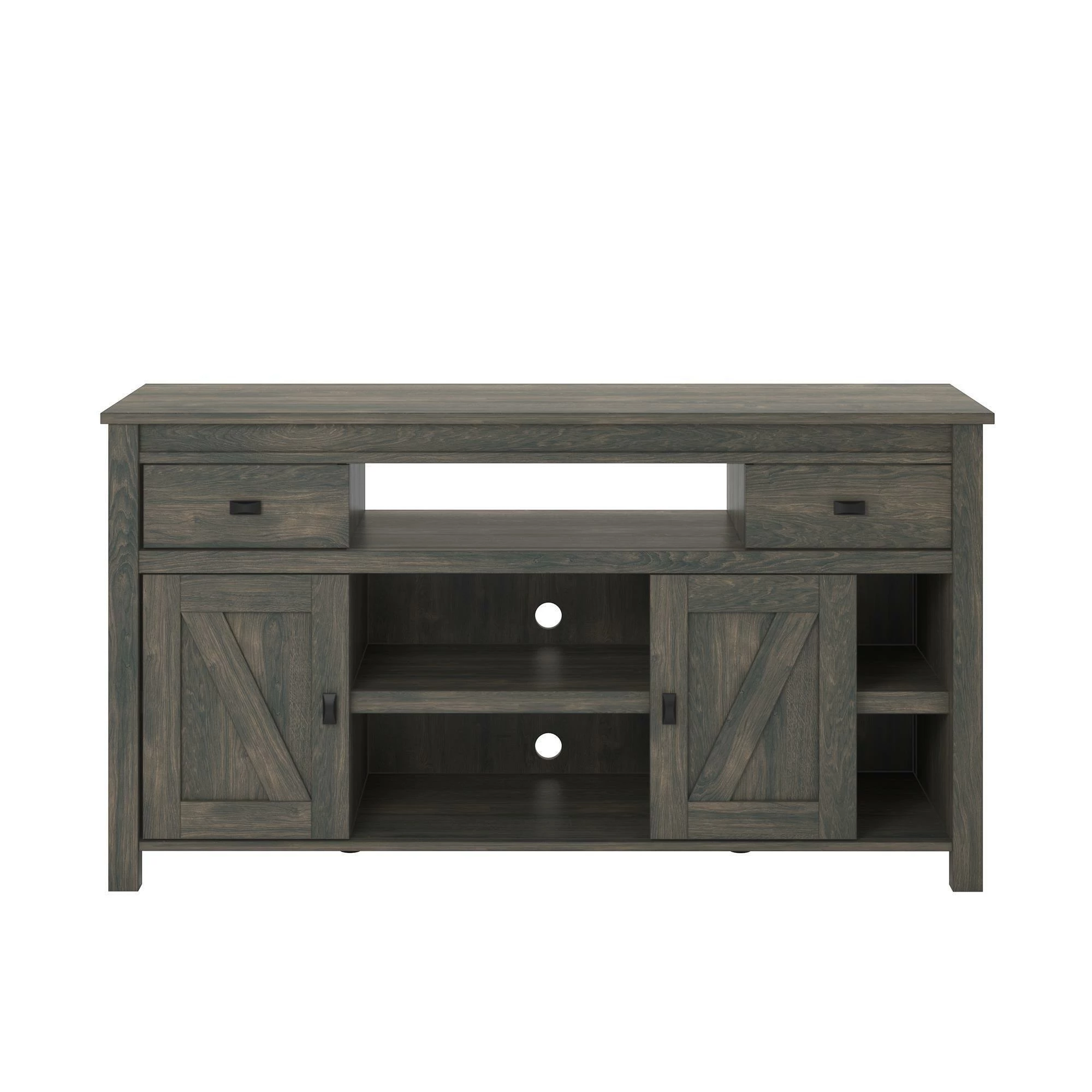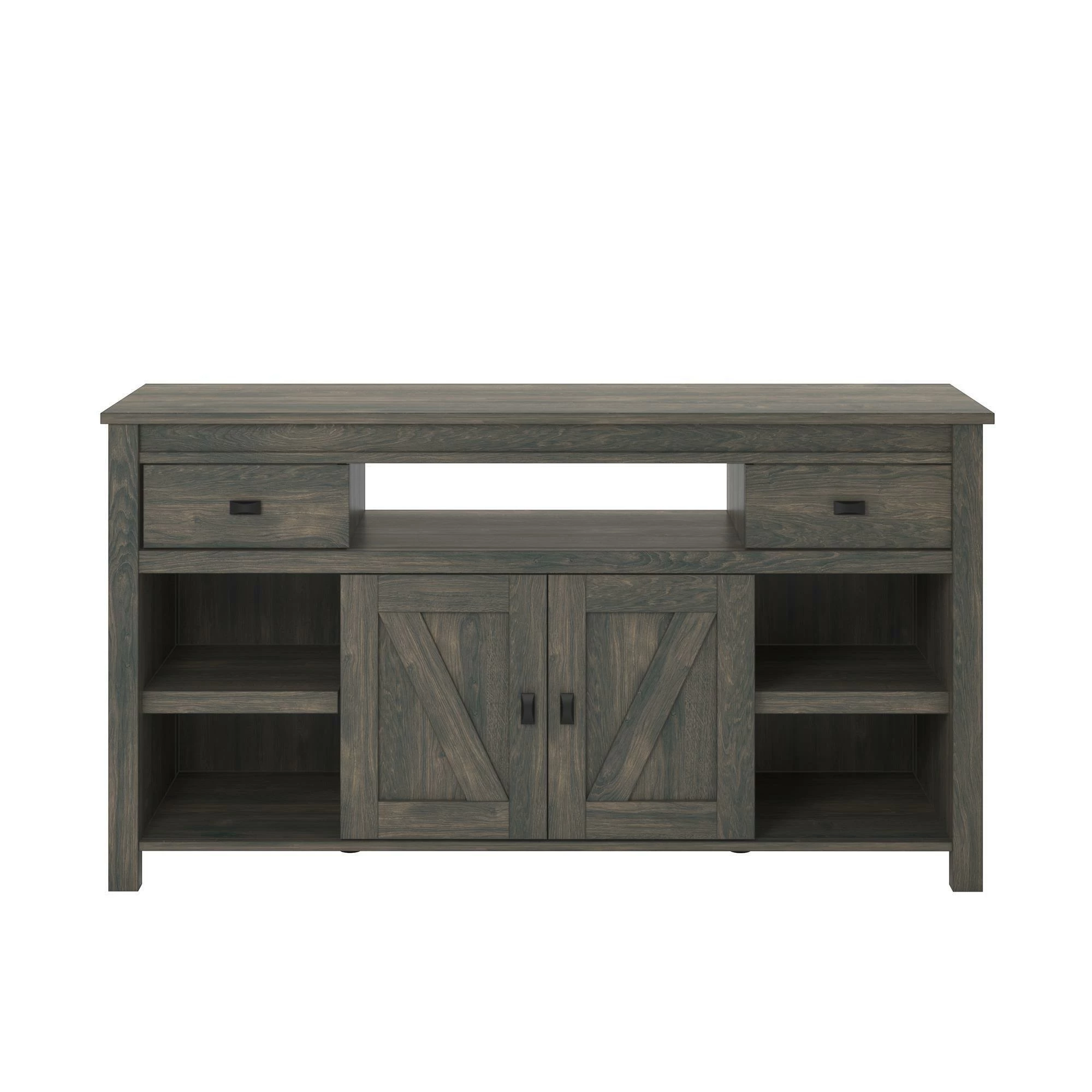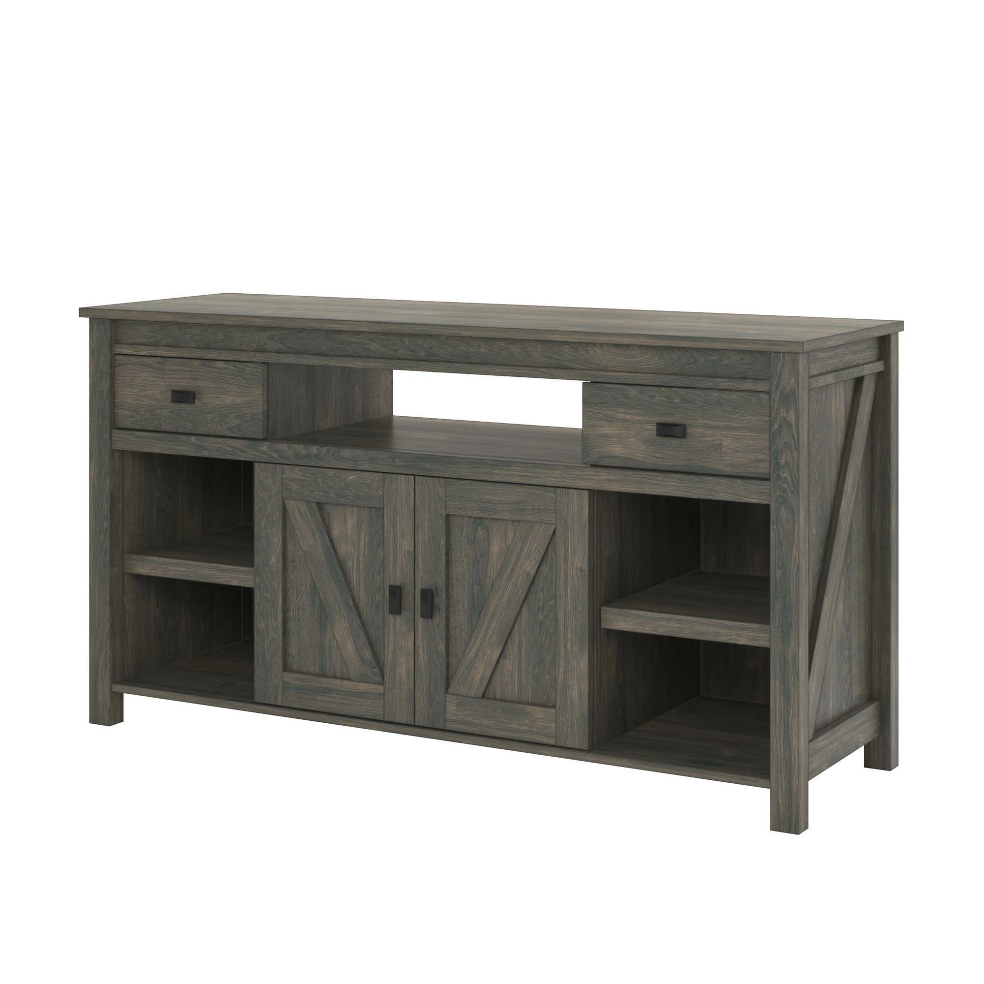 - Made from laminated MDF and particleboard, this TV Stand is inspired by the weathered look of an old barn