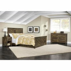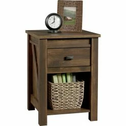 Bring a little rustic charm to your space with this nightstand. Inspired by the farmhouse style, this rustic nightstand resembles a wooden barn door and adds a unique touch to your space. The textured weathered medium brown finish has an old reclaimed wood appearance that has been further enhanced with an oil rubbed bronze pull.