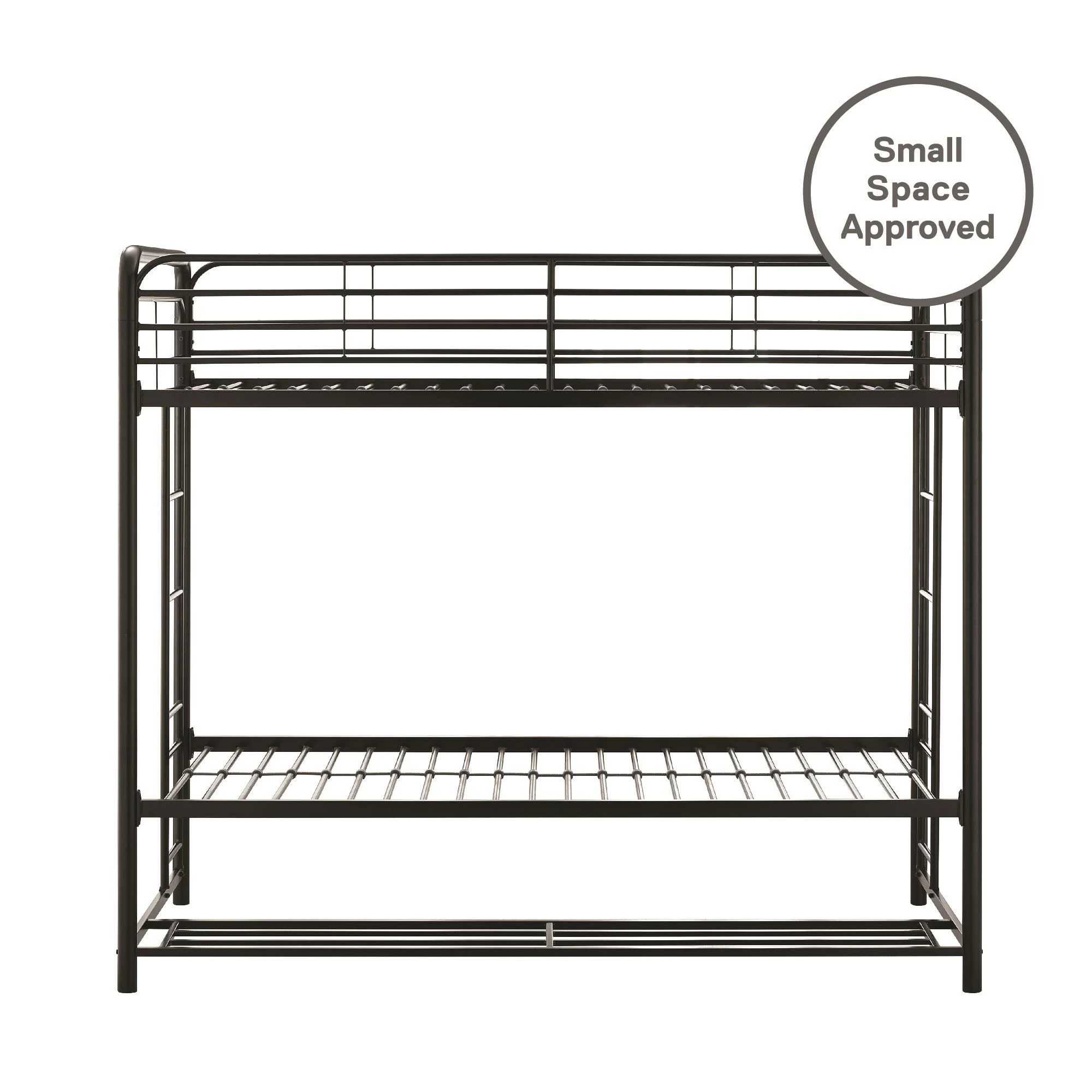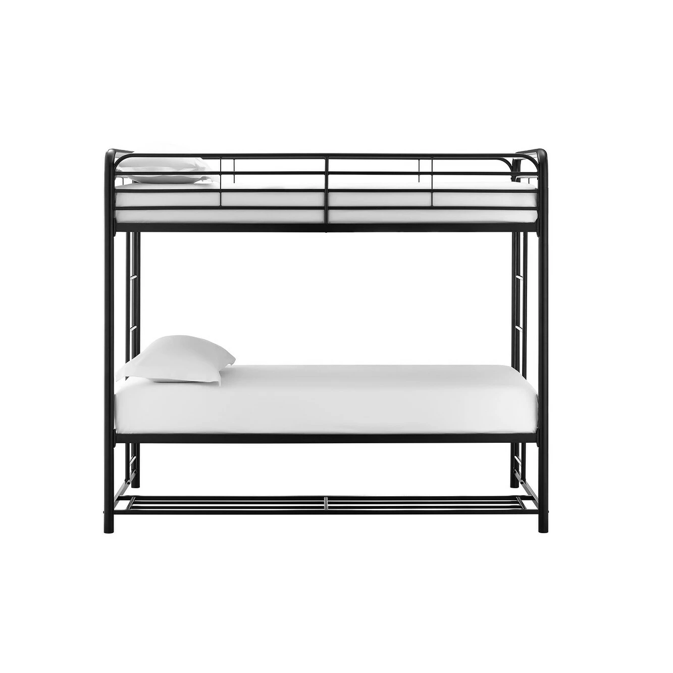 - Assembles quickly and accommodates two standard Twin-size mattresses (not included). Recommended mattress height for the top bunk is 6 inches. No box spring is required saving you even more money