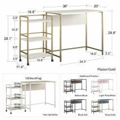 - Assembled desk measurements: 36″ W x 20″ D x 29.92″ H Β Assembled cart measurements: 16.8″ W x 11.42″ D x 28.1″ H Β Product assembled weight: 40.24 lbs.