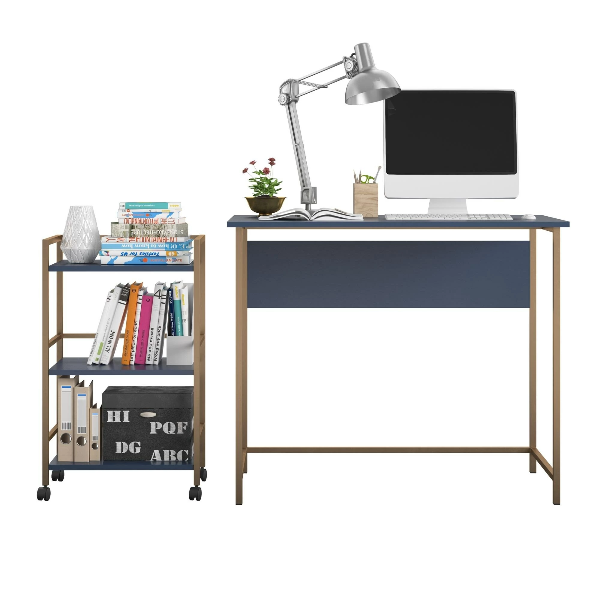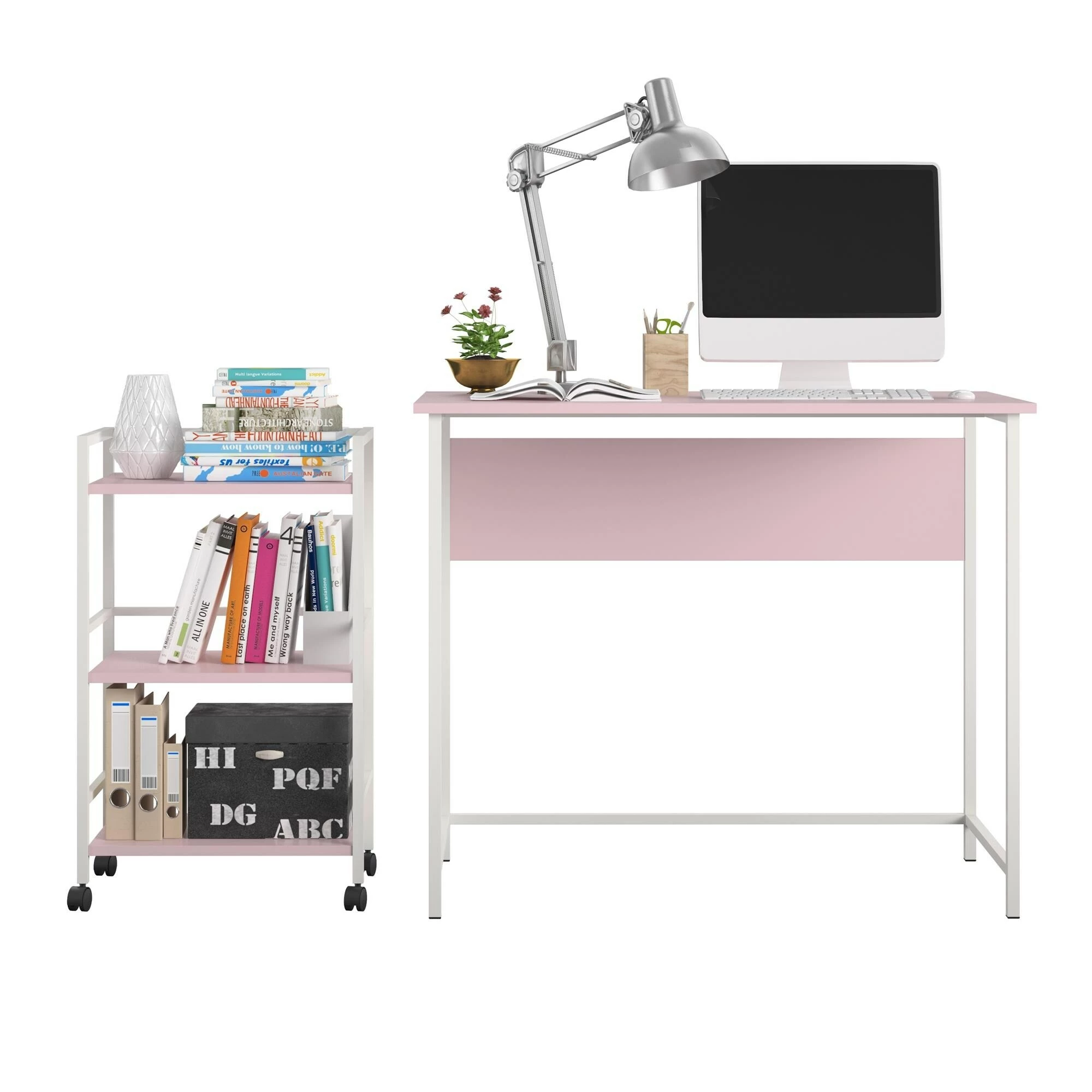 - Desk and Rolling Cart Combo offer storage solution to keep desktop neat and tidy