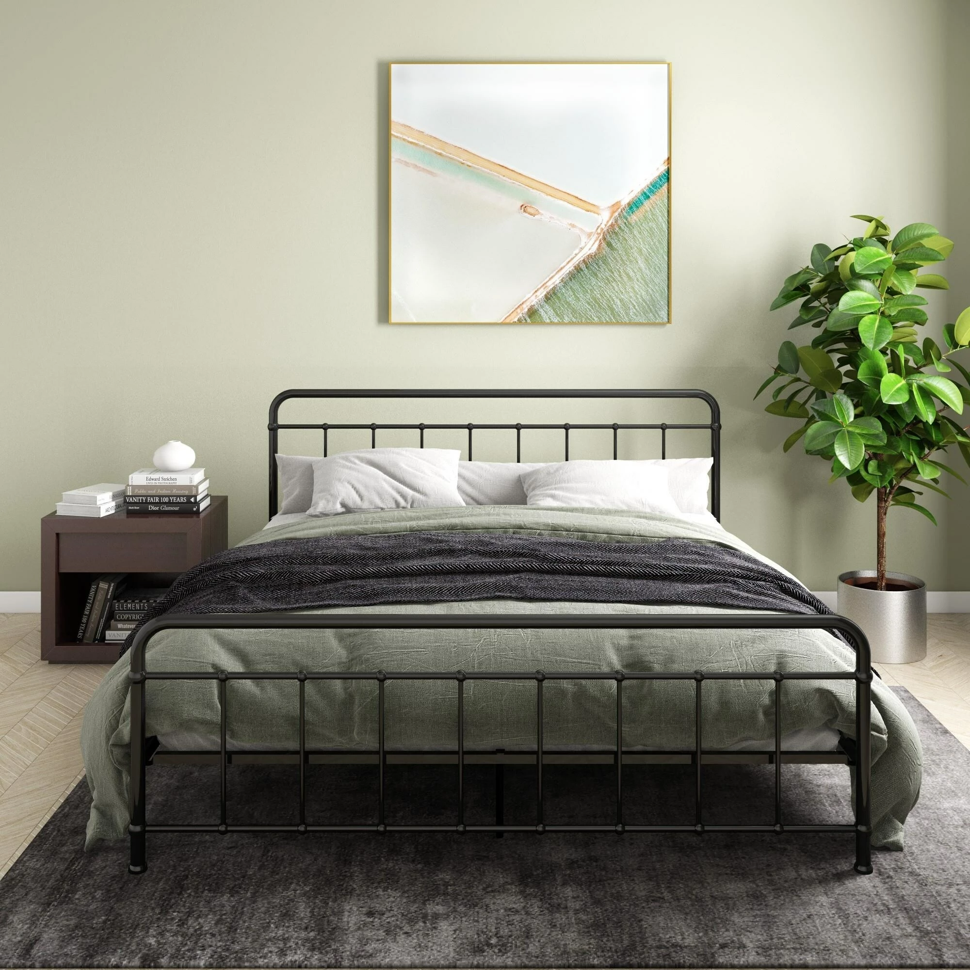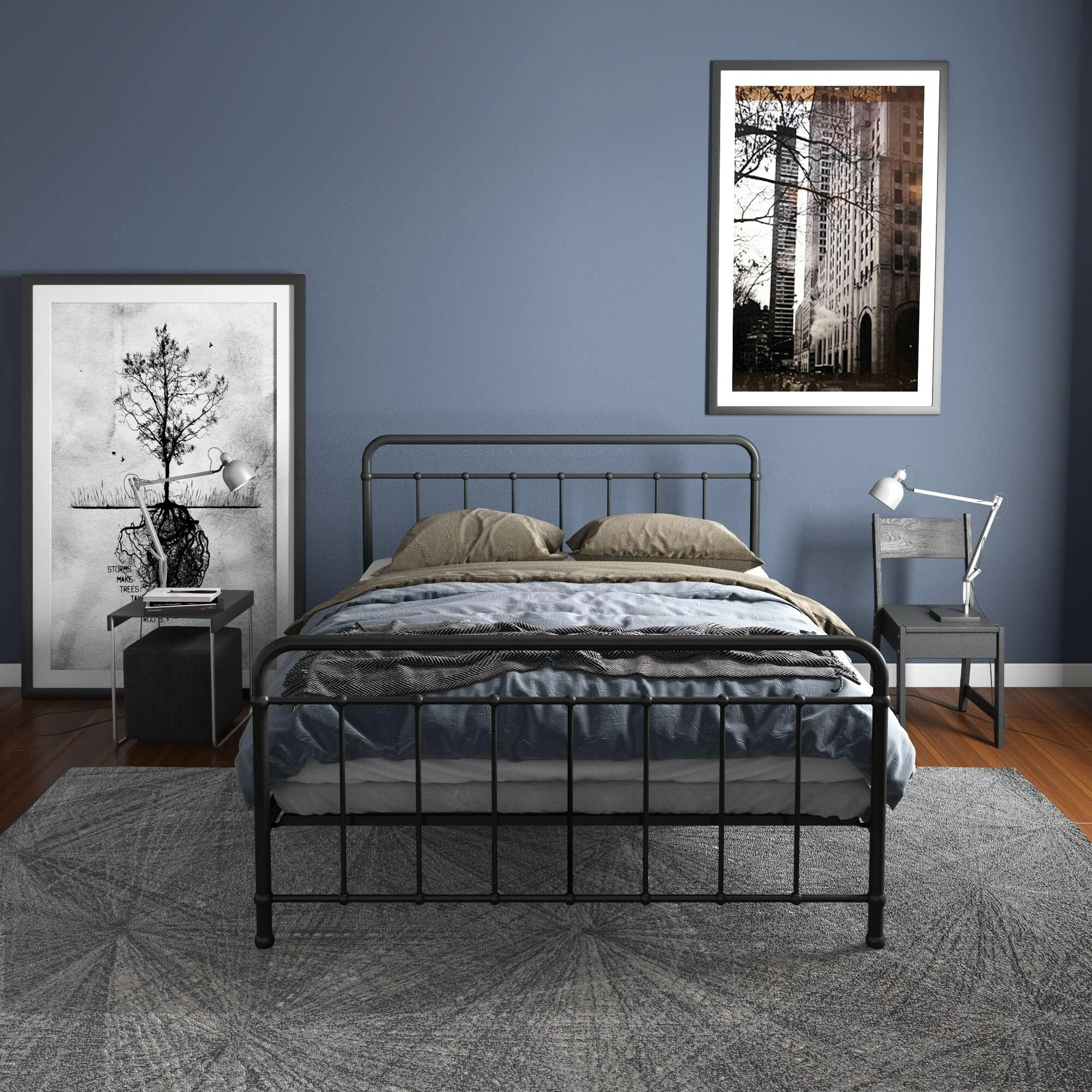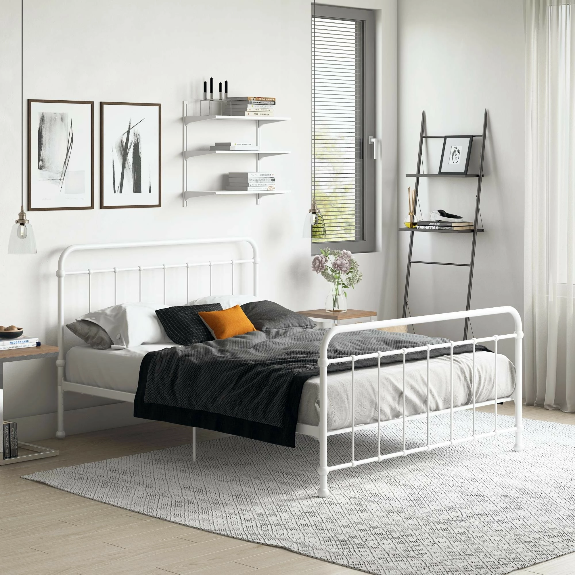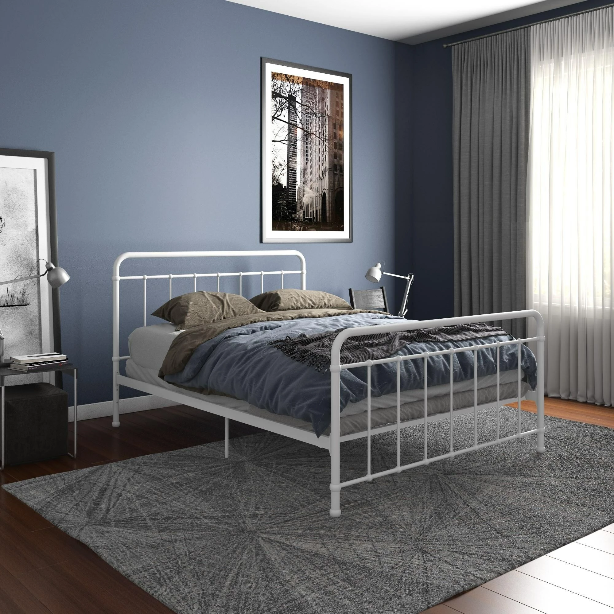 Simplicity is key with our Avenue Greene Bryn Metal Bed. Its timeless elegance and bed frame gives off a calming and contemporary feel that is perfect to complement any sized bedroom. Carefully designed with a metal frame, side rails and supporting legs, we guarantee you long lasting support and durability. Benefit from added support for both the bed and mattress thanks to its secured metal slats. Choose from two base heights: either a 7 or 11 inch clearance, to enjoy extra space right under your bed. Practical additional storage space – because let’s face it, you could never have enough! Available in white and black in all Twin, Full, Queen and King sizes. Ships in one box for easy handling and assembles effortlessly. Our Avenue Greene Bryn Metal Bed will make your sleeping experience blissful.