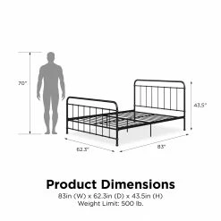 - Queen bed dimensions: 83″L x 62″W x 43.5″H. Weight limit: 500 lb.