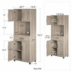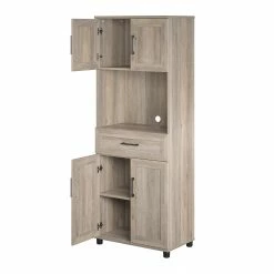 Skip the expensive coffee shops and bring it all home with your Derzig, 1 Drawer / 4 Door Tall Coffee Bar by Avenue Greene. The coffee bar features a rustic grey oak finish and clean modern farmhouse hardware. Simple, yet essential in your home office or kitchen, with space to store everything you need to make the perfect cup of Joe. Carefully crafted with modern European style hinges, adjustable shelving, and durable side mounted drawer slides for lasting enjoyment. Pair your new coffee bar with the matching Derzig Pantry to gain nearly an additional 13 cubic feet more storage space, creating the perfect kitchen combo. Assembled product measurement: 26.69″W x 15.55″D x 70.31″H Assembled weight: 68 lbs.