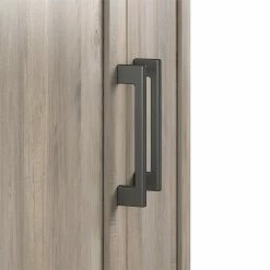 - Grey oak finish and clean mate black modern farmhouse hardware
