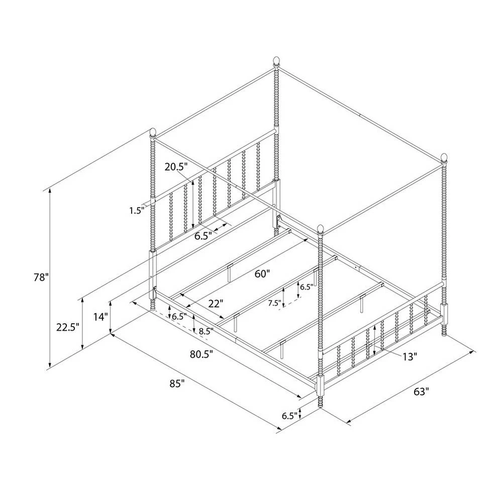 - Queen: 85 inches long x 63 inches wide x 78 inches high