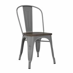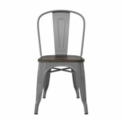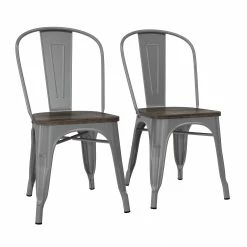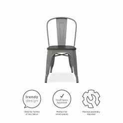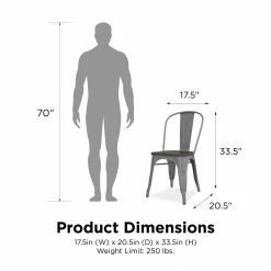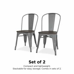 Captivate your guests with the Avenue Greene Filipa Metal Dining Chair with wood seat. Sold in sets of 2, these chairs are perfect for a modern, lofty chic styled space. They feature an industrial and rustic look, a stunning distressed metal finish and sturdy legs. Their durable steel frame and comfortable wooden seat promises to deliver support and durability that will last for years to come. The plastic endcaps attached on the bottom of the legs prevent damage to your floor. Compact, lightweight and stackable, these chairs are easy to move around when you have guests over and easy to put away in storage when they leave. With an individual weight limit of 225lb. These classic chairs will last for a lifetime and will match any contemporary or rustic dΓ©cor.