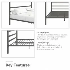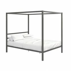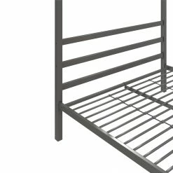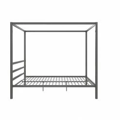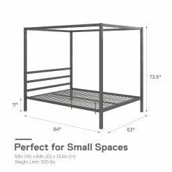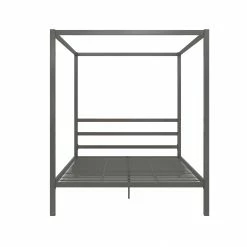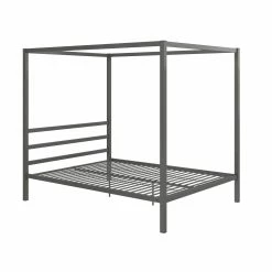 Bring some contemporary elegance to your space with this chic canopy bed. The bedframe is sturdily constructed ensuring the stability and durability for your mattress and it comes with metal slats that allow air to flow freely beneath your mattress, keeping it fresher longer. No need for a box spring or foundation. Transform your childβs bedroom into a magical forte by adding playful designed curtains or create a royal look for yourself.Β