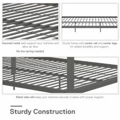 - Includes secured metal slats, metal side rails and additional center legs for added support