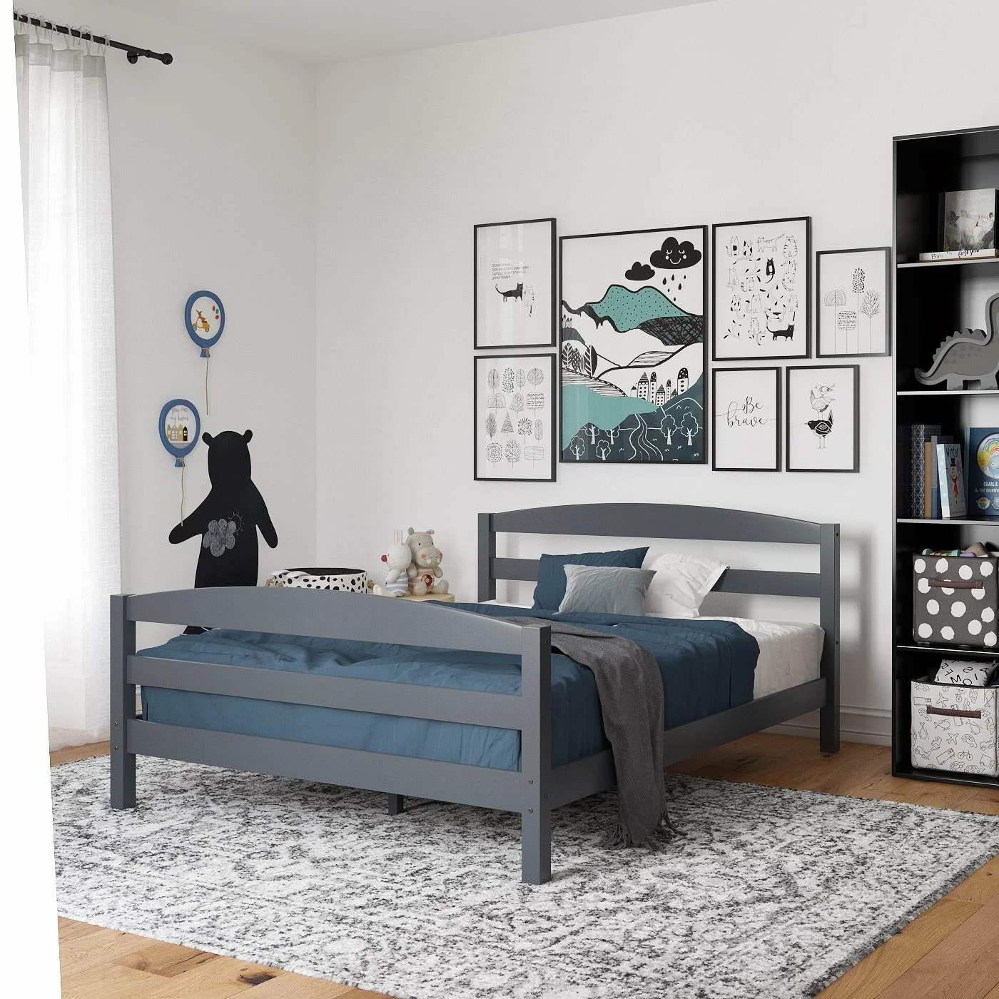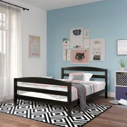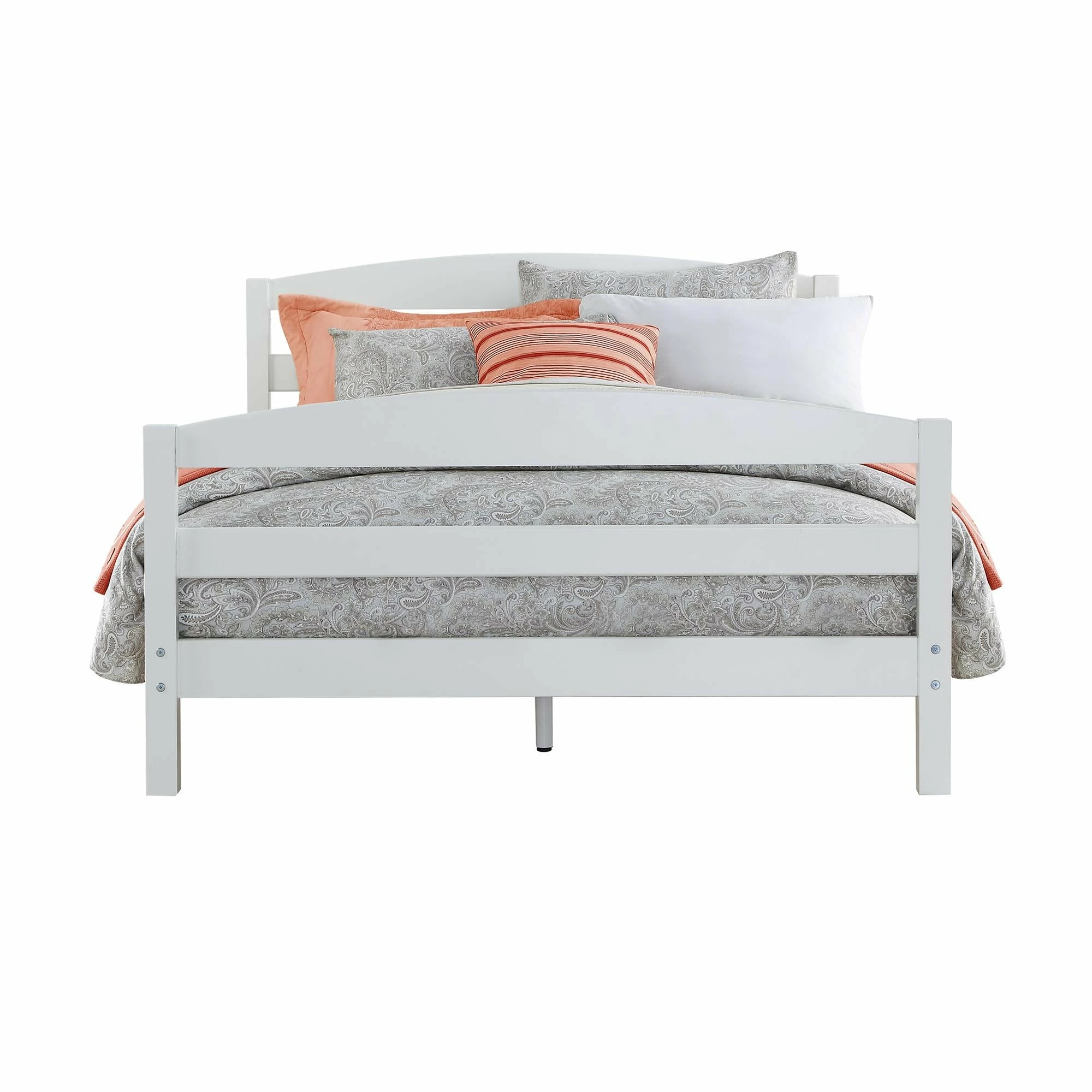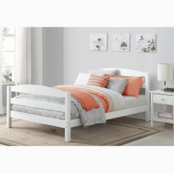 - Bed includes an arched open slat headboard and footboard, side rails, and slats