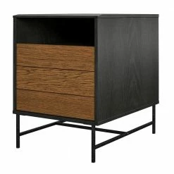 - Made of laminated particleboard and real wood veneer with a powder-coated metal frame