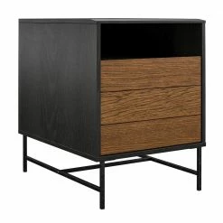 Finish your living room with a trendy mix of rustic and industrial styles with the Avenue Greene Hixson End Table. The beautiful two-tone finish makes this piece an excellent fit for almost any style of decor. The End Table is made with a wood veneer door and laminated particleboard chassis that pairs with the metal powder-coated metal frame for a durable build that will last for years. Keep your remotes, books, tablet, and more within reach in the open cubby or concealed storage behind the door. The open cubby offers a wire management hole in the back panel so you can plug in your electronics to charge without taking up table top space. The End Table ships flat to your door and requires assembly upon opening. Two adults are recommended to assemble. Once assembled, the End Table measures to be 24?H x 18?W x 23.5?D.