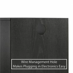 - Keep essentials within reach on the spacious table top and open cubby. The open cubby offers a wire management hole to easily plug in your electronics to charge