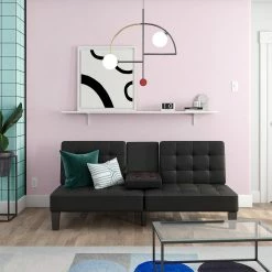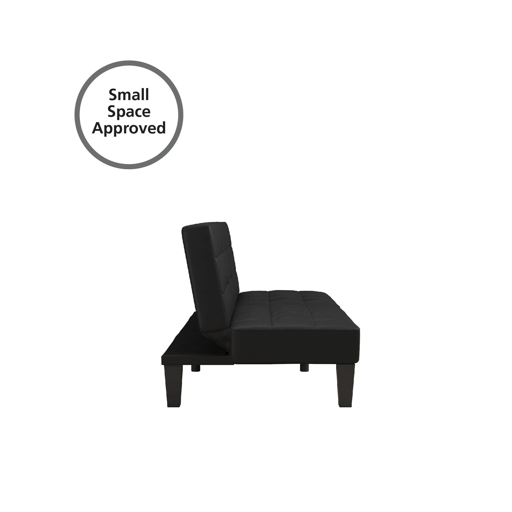 The Julian Convertible Futon with Cup Holder understands the constant struggle of sitting back to enjoy a movie but constantly dropping popcorn or spilling your drink. The solution? A fold-down cup holder tray that can hold two drinks and your snacks of choice. With its multi-position backrest, it also allows you to choose between a sitting, lounging or sleeping position with a simple push or pull. Available in a variety of colors and finishes to blend in perfectly with any living room aesthetic. You will never want to leave your home again! Add to the fun with the Julian Chaise Lounger for more sitting and sleeping space. Sold separately.