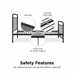 - Includes metal slats to provide support and comfort
