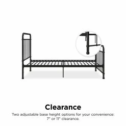 Simple yet stylish, the Kate Metal Daybed is the perfect fit for any bedroom decor. Industrial and modern, it features a curved headboard and footboard, horizontal lines, and metal decorative details. The Kate is built with a strong metal frame that is fortified with side rails, support legs and secured metal slats to ensure stability for years to come. As an added bonus, the Kate has two base height options – 7″ or 11″ clearance – perfect to store seasonal clothing or other less frequently used items. The Kate is available in Black, White or Rose Gold.