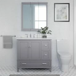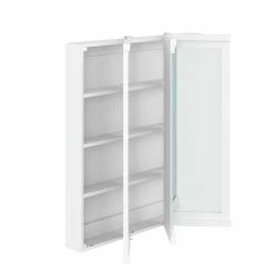 - Enjoy the view: 3 tri-view hinged mirrored doors with fully backed panels let you easily open and close your cabinet while giving you a clear wide view from all angles to help you get ready in the morning
