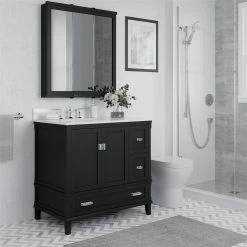 Stepping into a clutter-free bathroom feels pretty nice, doesn’t it? You can thank the Avenue Greene Konnor Bathroom 3 Door Mirrored Medicine Cabinet for your neat and tidy personal zone. It’s a storage haven with 4 wide shelves, with each shelf durably built to store your toiletries and grooming items. Indispensable for anyone who has had trouble in the past finding their medication in the middle of a brutal migraine, this hard-working organizer keeps everything you need at hand for easy reach and quick relief. And mascara application or shaving morning stubble is a total breeze with the framed triple door mirrors that feature back paneling and tri-view hinges for clear visibility. Crafted using solid and engineered wood, this sturdy paint finished accessory combines nicely with the contemporary styled Konnor Bathroom Vanity for a beautiful look (vanity not included). Wall mountable straight out of the box. Available in multiple colors.