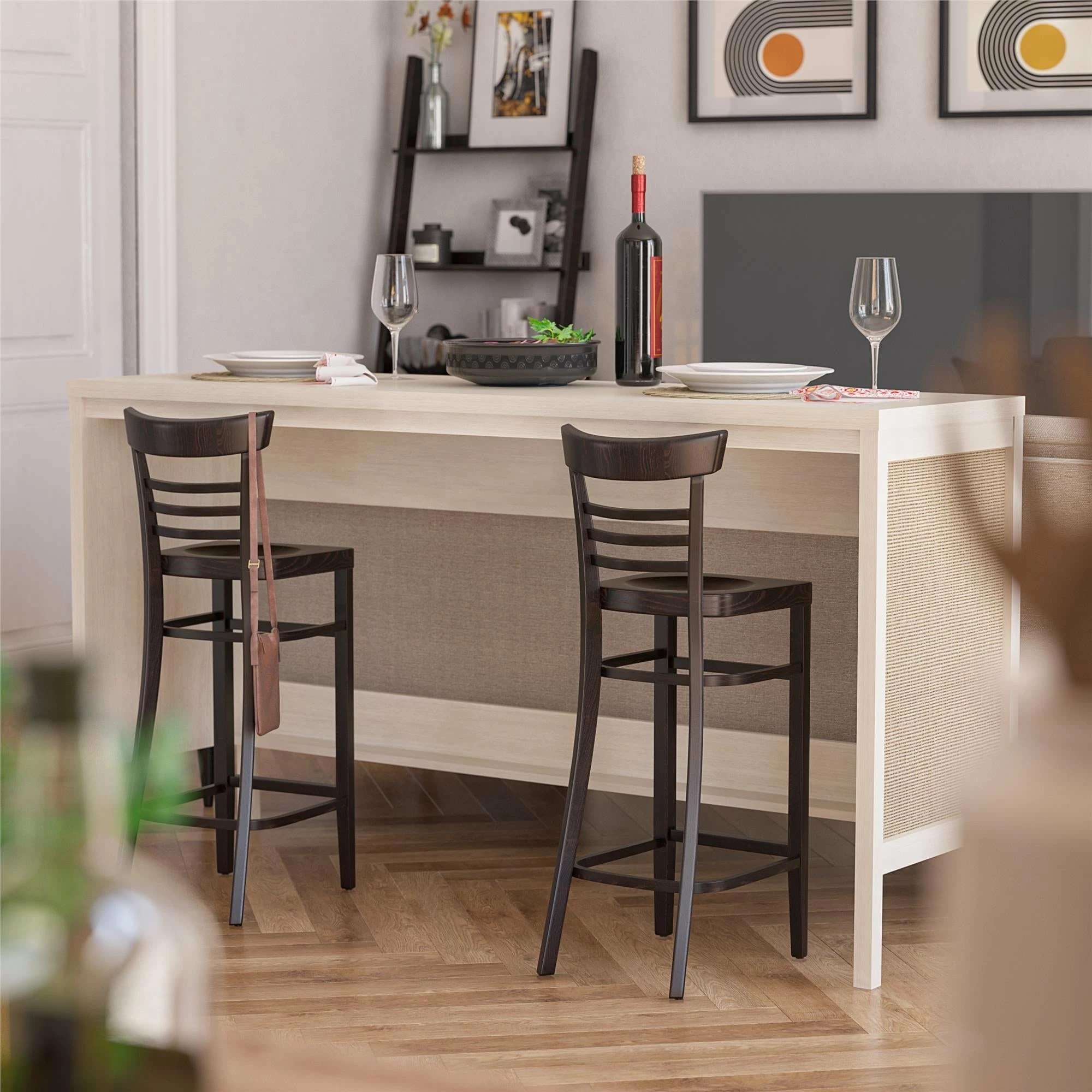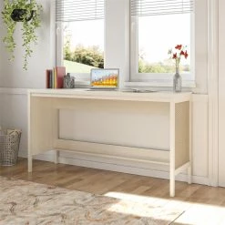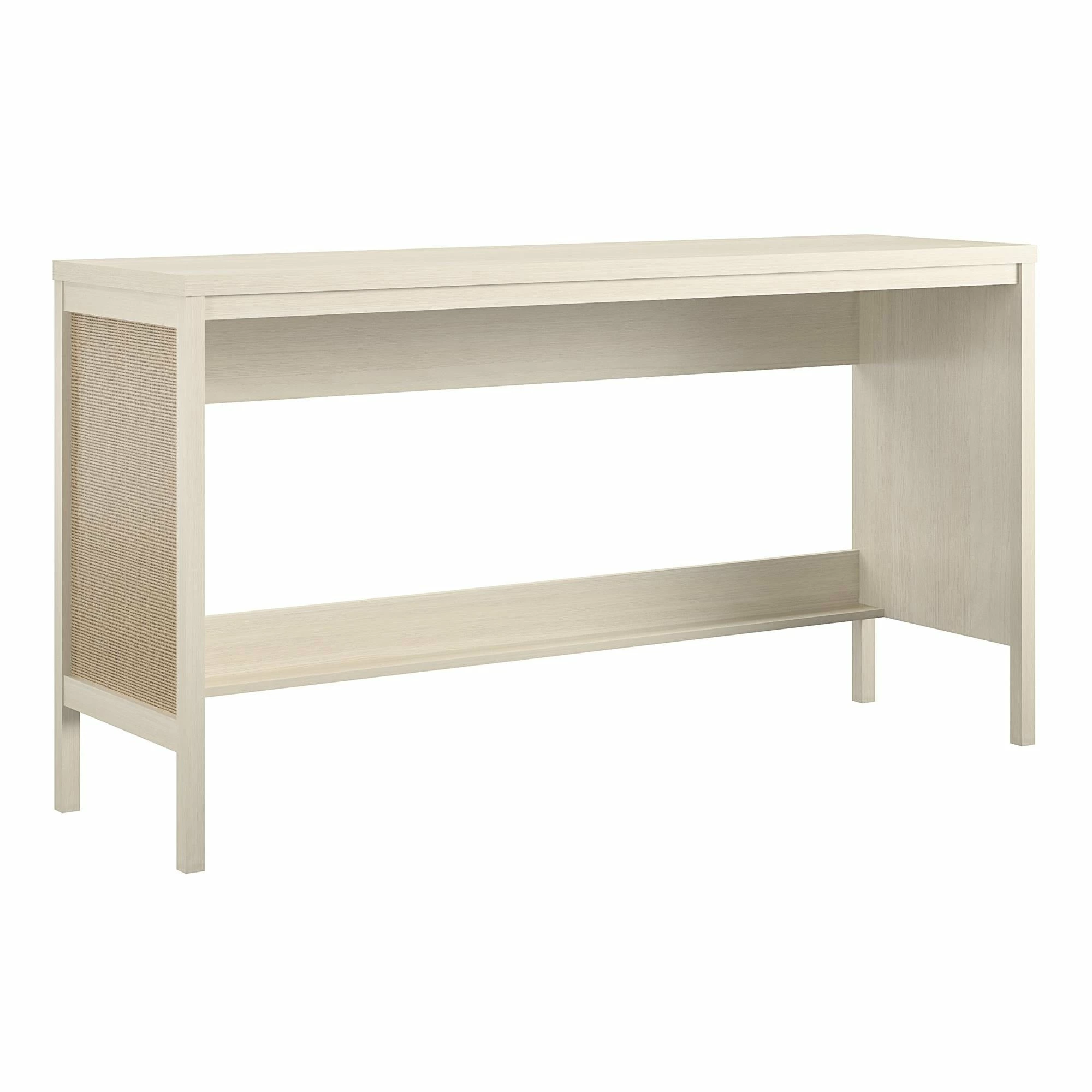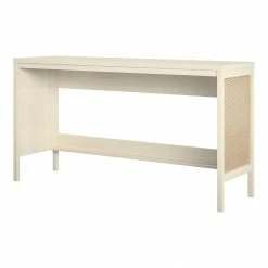 Give your living room a boho-chic upgrade with the Avenue Greene Leeds Console Table. Place the Console Table behind your couch to provide extra seating to watch your favorite shows or the big game. The Console Table can also be used as a desk or homework station for you or your kids to conveniently work or learn from home. You can also spruce up your entryway and add a space to put keys, mail, or decorations as you walk in the door. This versatile Table can be used however you need it! Made of laminated MDF and particleboard, the off-white woodgrain finish pairs with the faux rattan side panels for a fun coastal feel. ย Complete the look with the entire Leeds Collection. (sold separately) The Console Table ships flat to your door and requires assembly upon opening. Two adults are recommended to assemble. Once assembled, the Console Table measures to be 35.94″H x 67.7″W x 19.69″D.