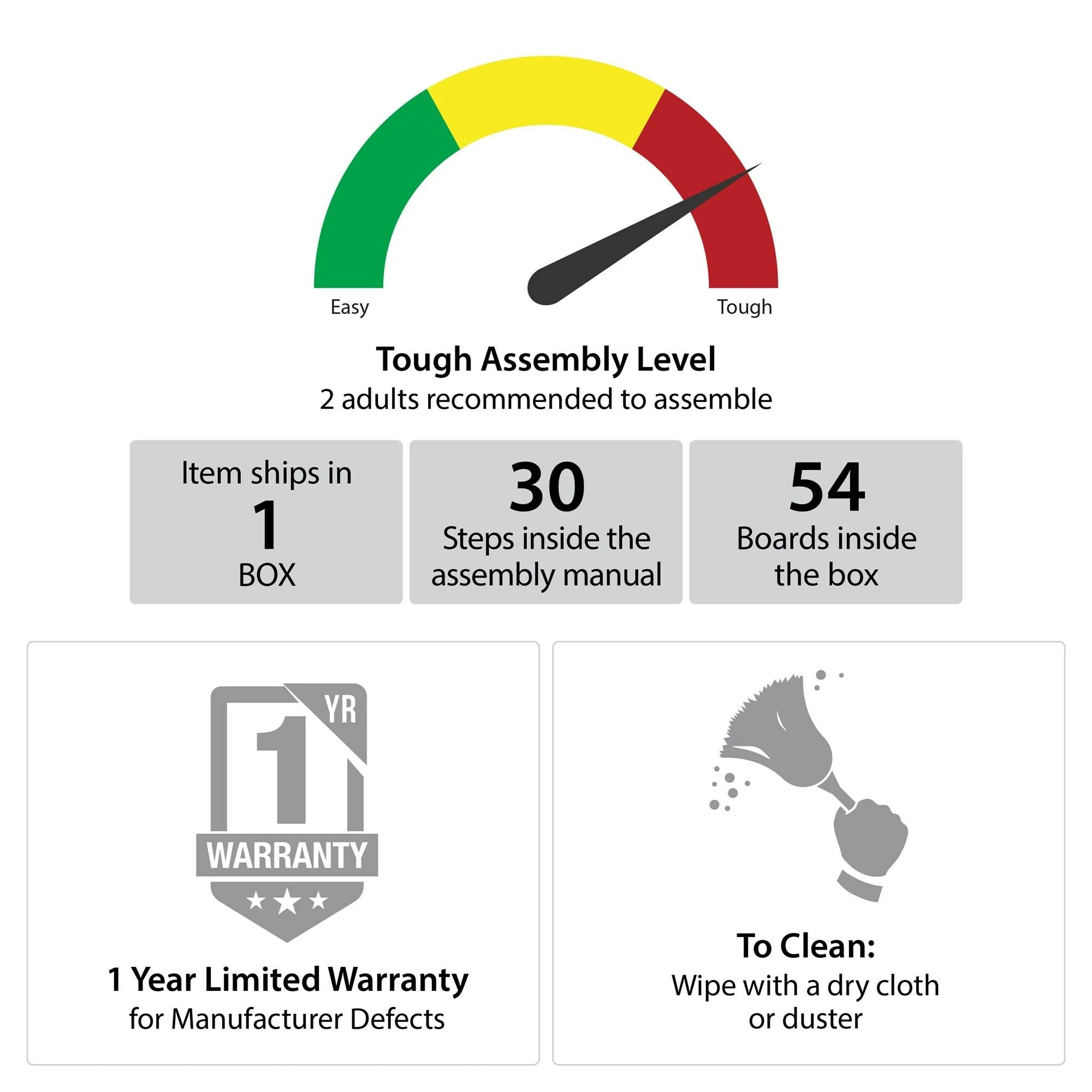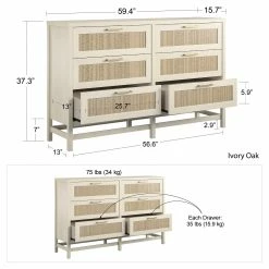 - The Dresser ships flat to your door and 2 adults are recommended to assemble. The top surface can hold 75 lbs. while each drawer can hold 35 lbs. Assembled dimensions: 37.28″H x 59.37″W x 15.67″D. Interior drawer dimensions: ย 25.7″ W x 5.9″ H x 13″ D.