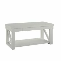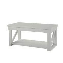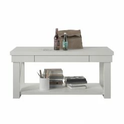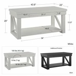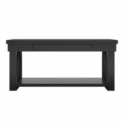 No living room is complete without the perfect coffee table. ย The Avenue Greene Livingston Coffee Table brings that “wow” factor to any room with its great looking rustic finish and decorative legs. ย Keep your magazine or drink conveniently within arm’s reach on the large top surface. ย Showcase your decorative accessories or books on the bottom shelf. The coffee table even includes a small drawer for your remotes and is finished on all 4 sides for versatile placement in your living room. ย Made of painted MDF, the weathered finish makes this coffee table perfect for any style. ย The coffee table ships flat to your door and requires assembly upon opening. Preassembled table top and sides makes assembly quick and easy.