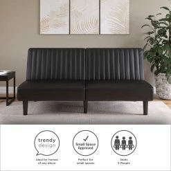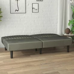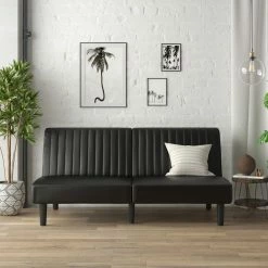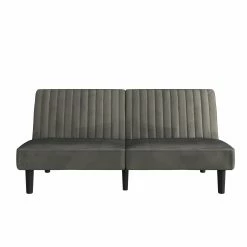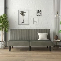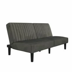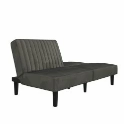 It can seem like a daunting task to renovate your outdated living room, guest bedroom or home office spaces, but with the Avenue Greene Madelyn Futon, sometimes all you need is that one simple furniture piece to make everything look modern and new. The answer to compact living, this convertible futon transitions from day to night with its clever split-back design that enables the backrest to recline between sitting, lounging, or sleeping positions, so you’ll never feel panicked if ย out-of-town guests need a comfortable bed for their stay because you have the perfect accommodations ready on standby. Constructed with a strong wood frame and sturdy plastic legs, the Madelyn was made for style and longevity with its well-stitched backrest vertical tufting and your choice of either soft velvet or chic faux leather upholstery. Give your home a quick makeover with the Madelyn Futon, available in multiple shades and finishes.