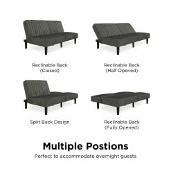 - Multi-function split-back design that independently reclines between three positions: sitting, lounging and sleeping. Perfect sofa bed to accommodate overnight guests.