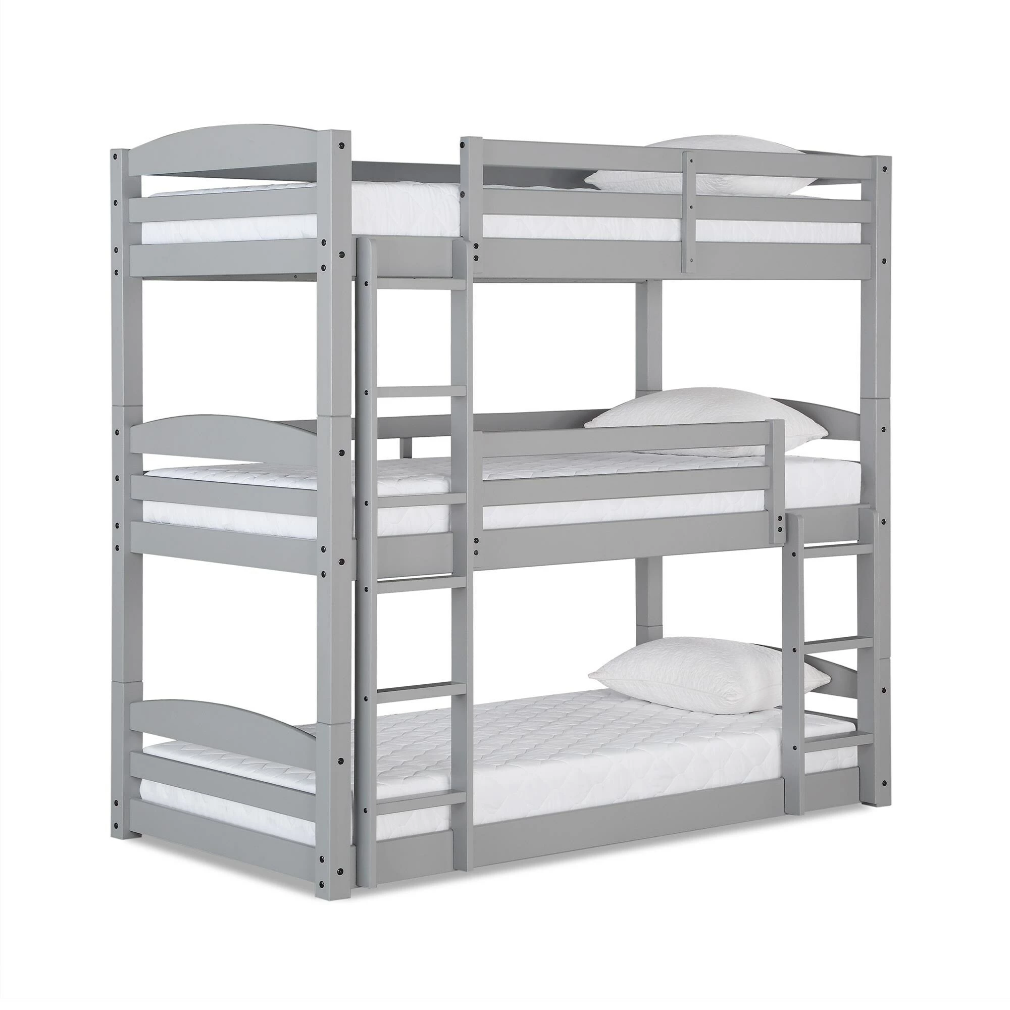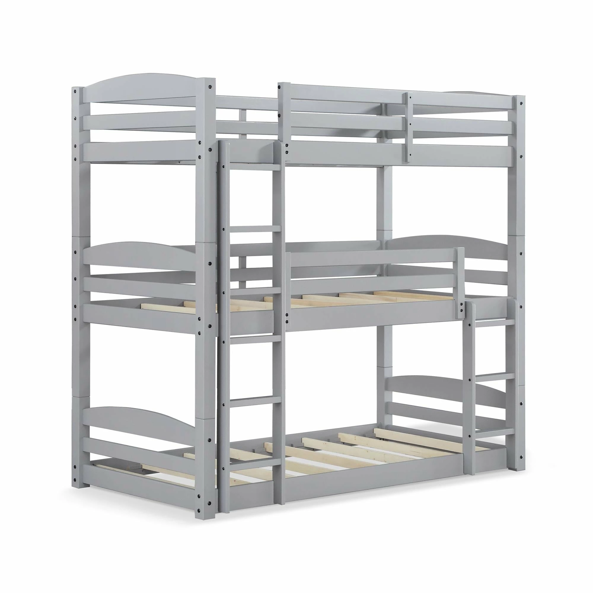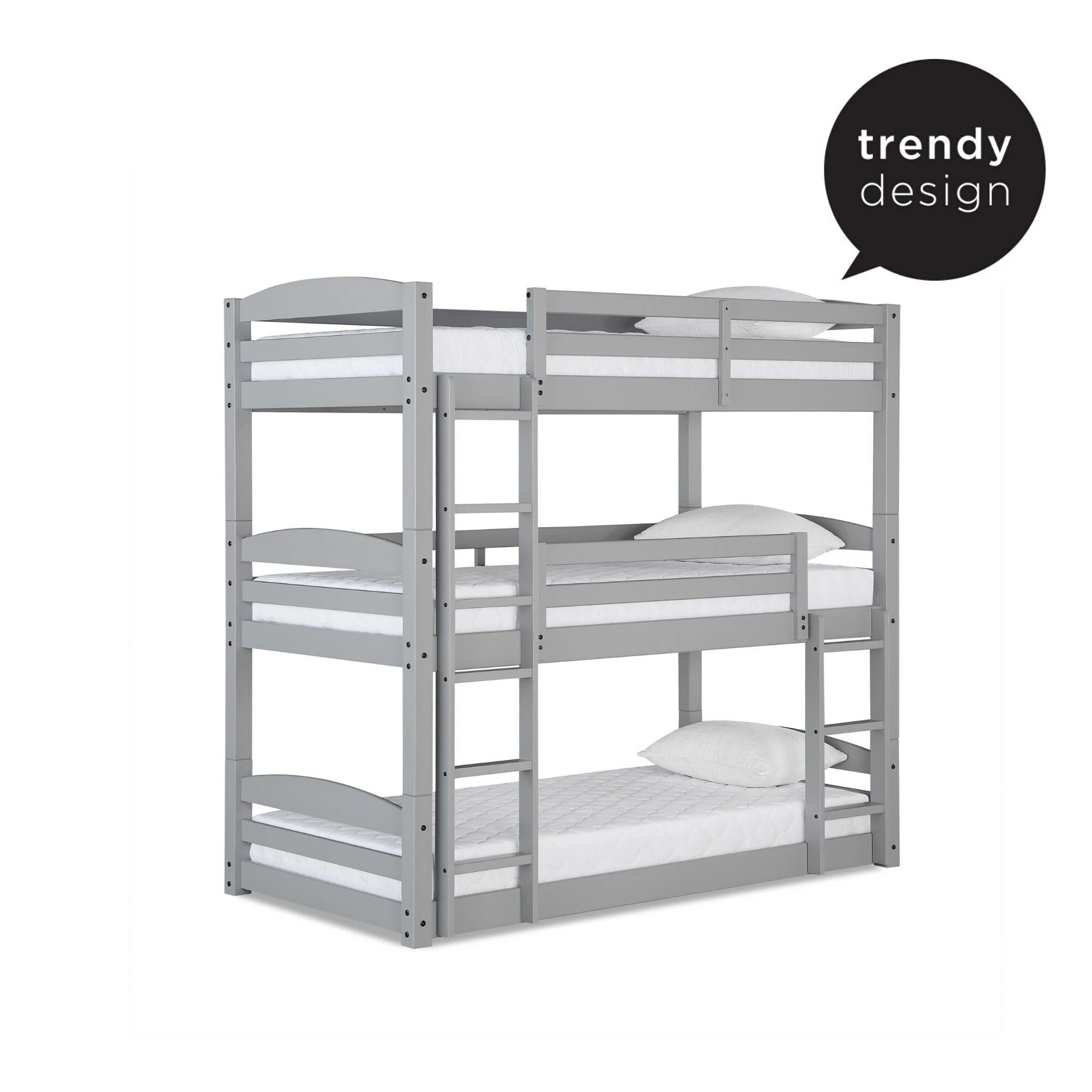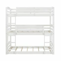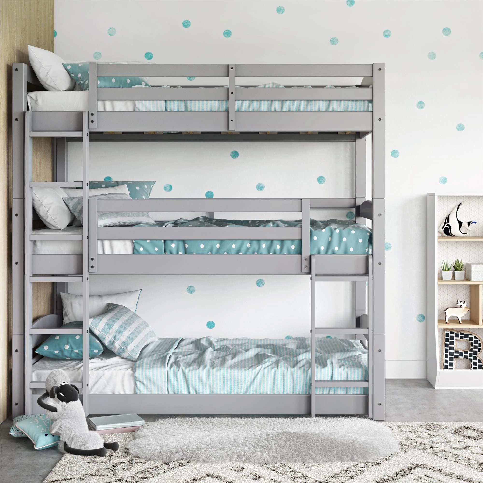 - Space-saving design triple bunk bed that is ideal for any small living space. Optimal support and safety with the built-in ladders for safe, dependable access to upper bunks.