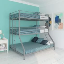 - Twin/twin/full option: Fits two standard twin size mattresses and one standard full size mattress Β (sold separately). For best comfort, we recommend a 6″ height mattress to be used on the lower bunk. Β For upper and middle bunks, ensure thickness of mattress is greater than 4″ and does not exceed 6″.Β