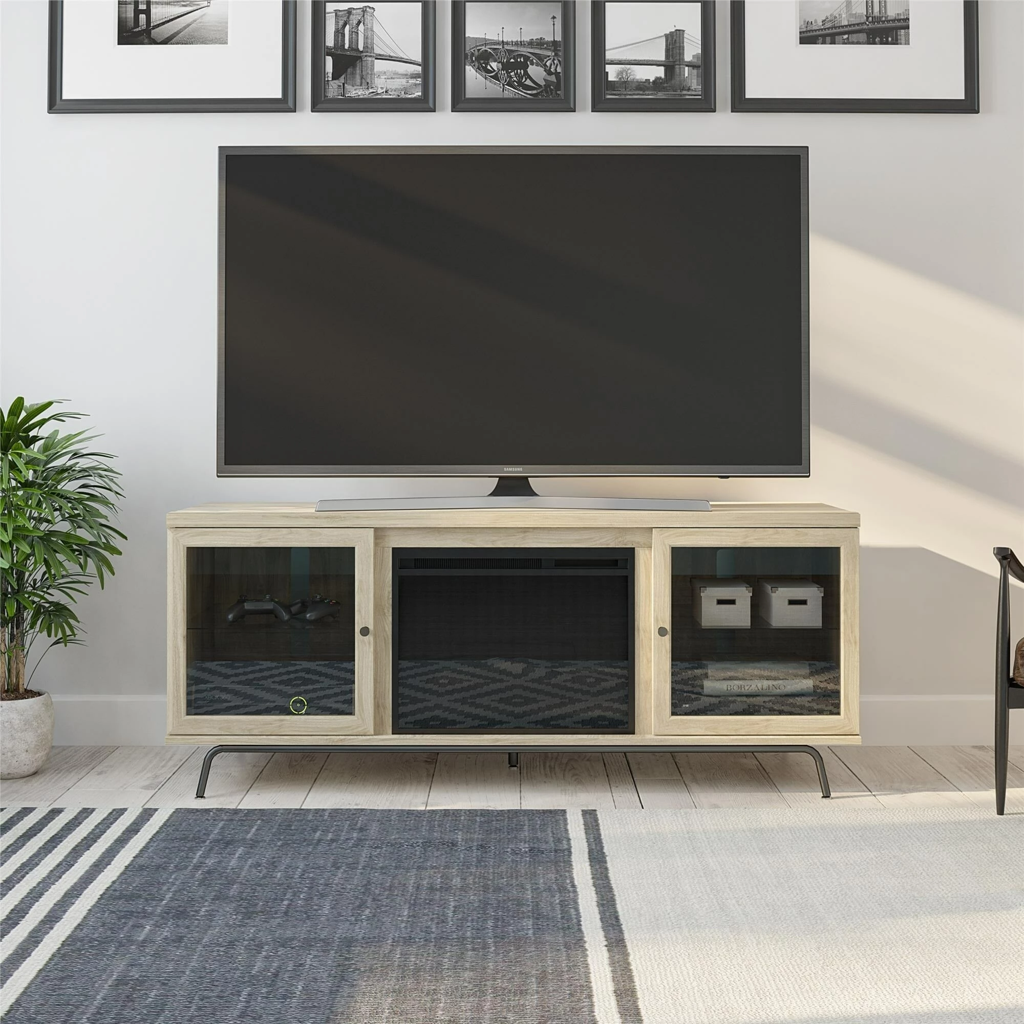 - Get cozy while watching your favorite movie or show with the Avenue Greene Riverside Fireplace TV Stand for TVs up to 70″ wide and up to 120 lbs.