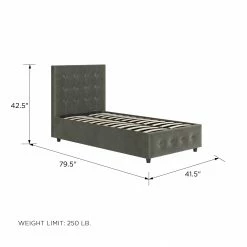 - Bed: 56.5 inches wide x 79.5 inches long x 42.5 inches high