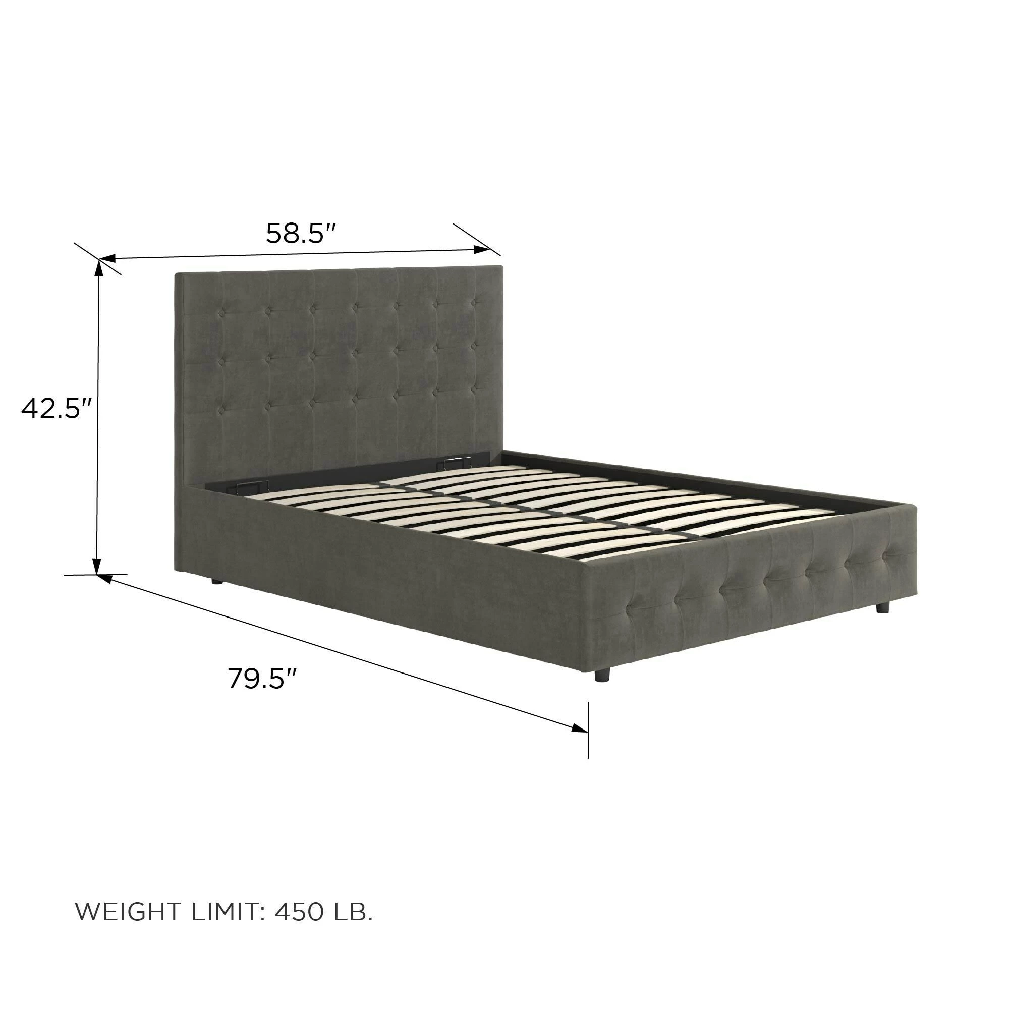 - Bed: 62.5 inches wide x 85 inches long x 42.5 inches high