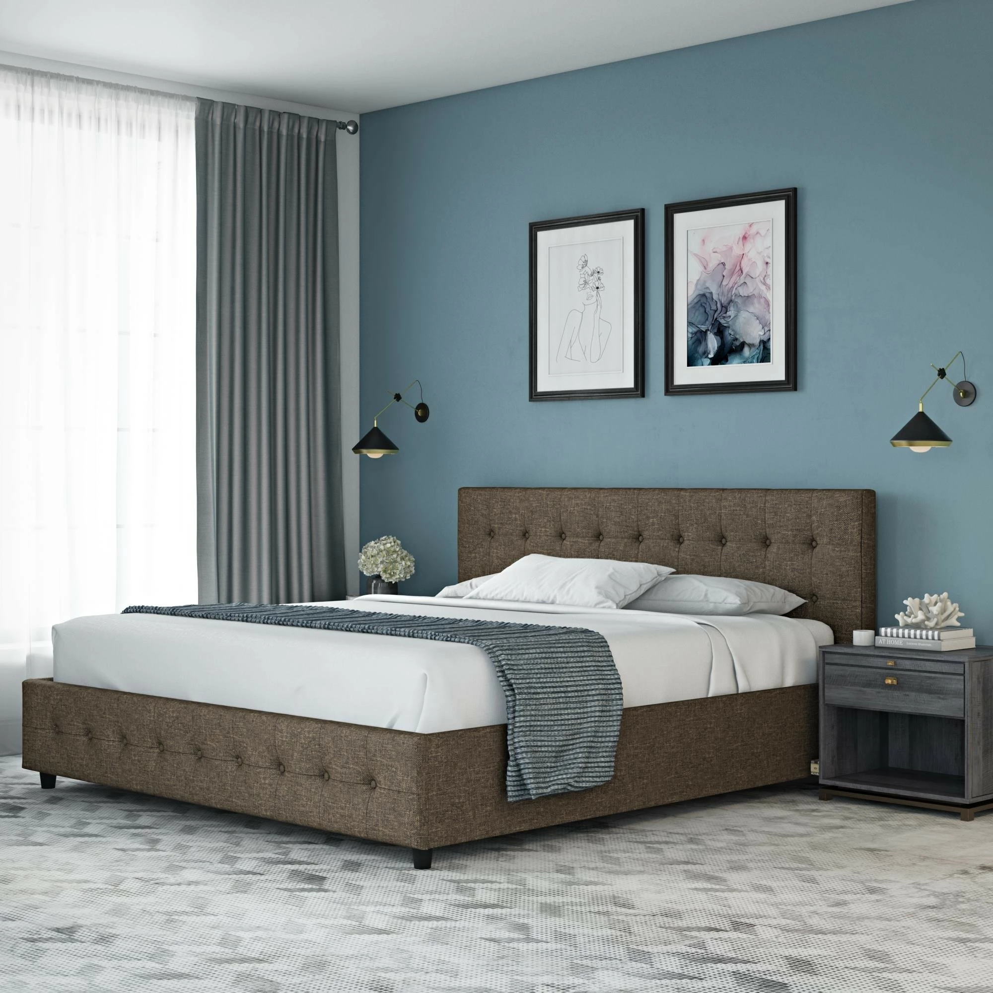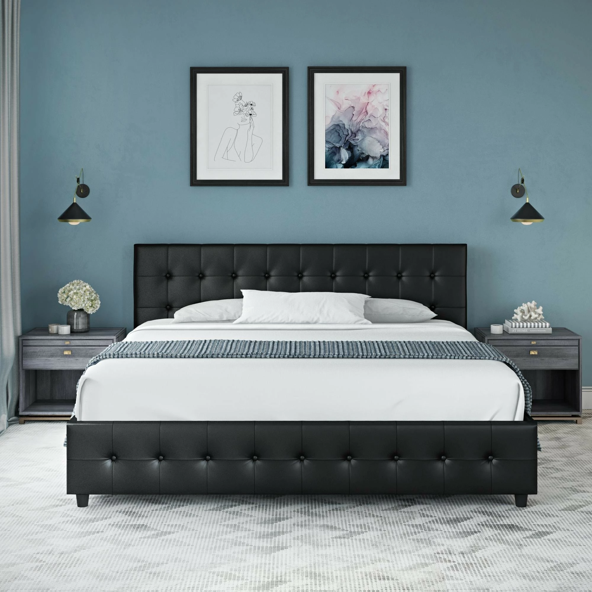 - Button tufted headboard and footboard