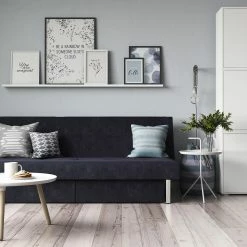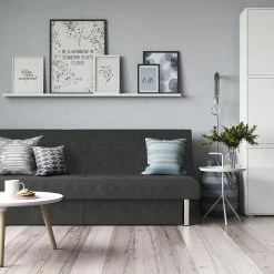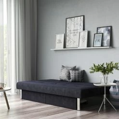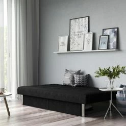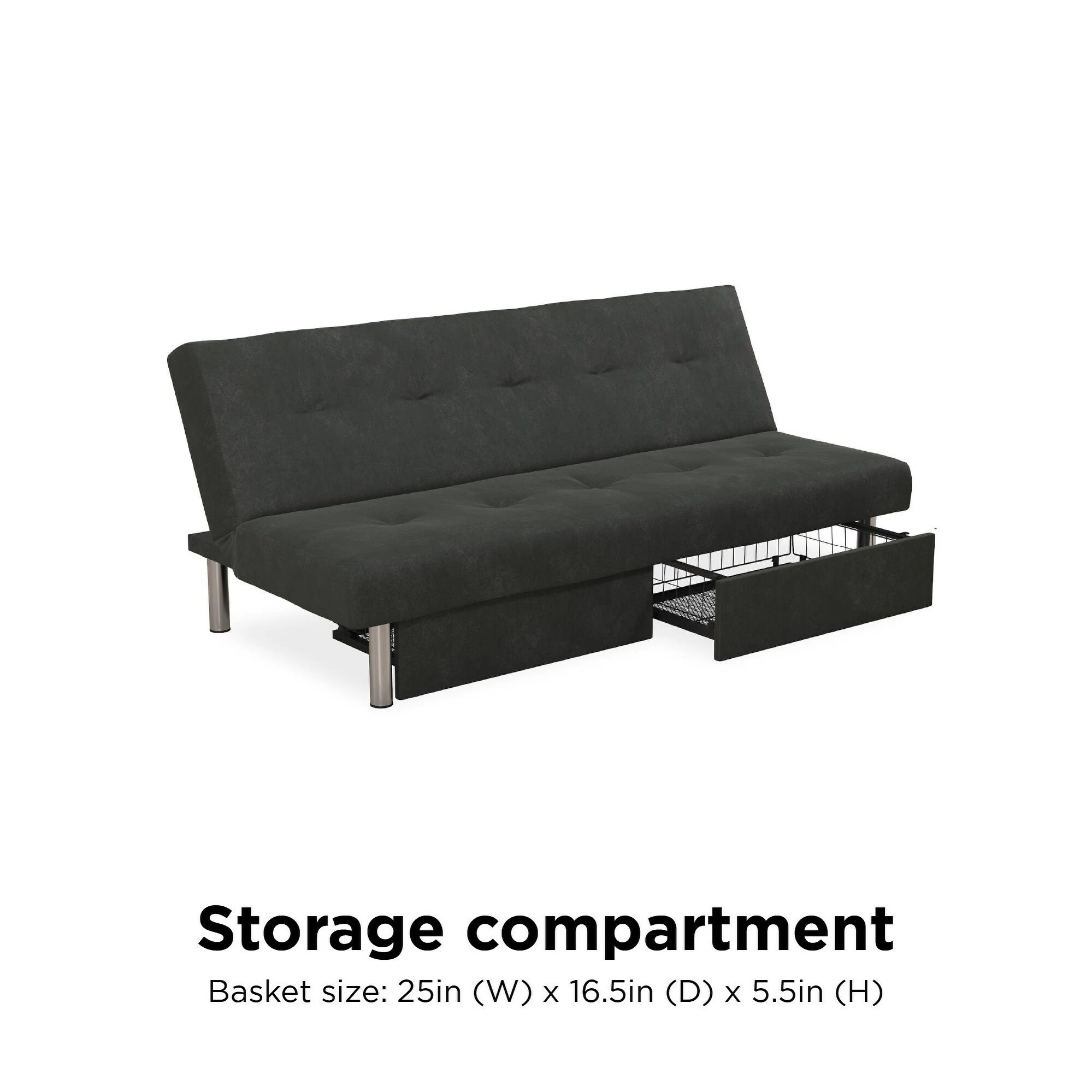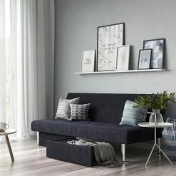 The ideal seating solution for every home, this distinctive storage futon boasts style, comfort, and functionality in one fell swoop. An armless silhouette, tufted details on the back and seat cushions, and soft microfiber upholstery all marry, for the ultimate in stylish, convenient comfort: its back cushion adjusts to your comfort preferences, from sitting to lounging or sleeping.