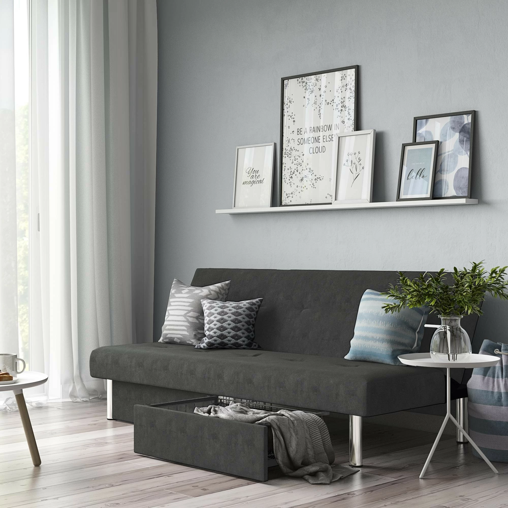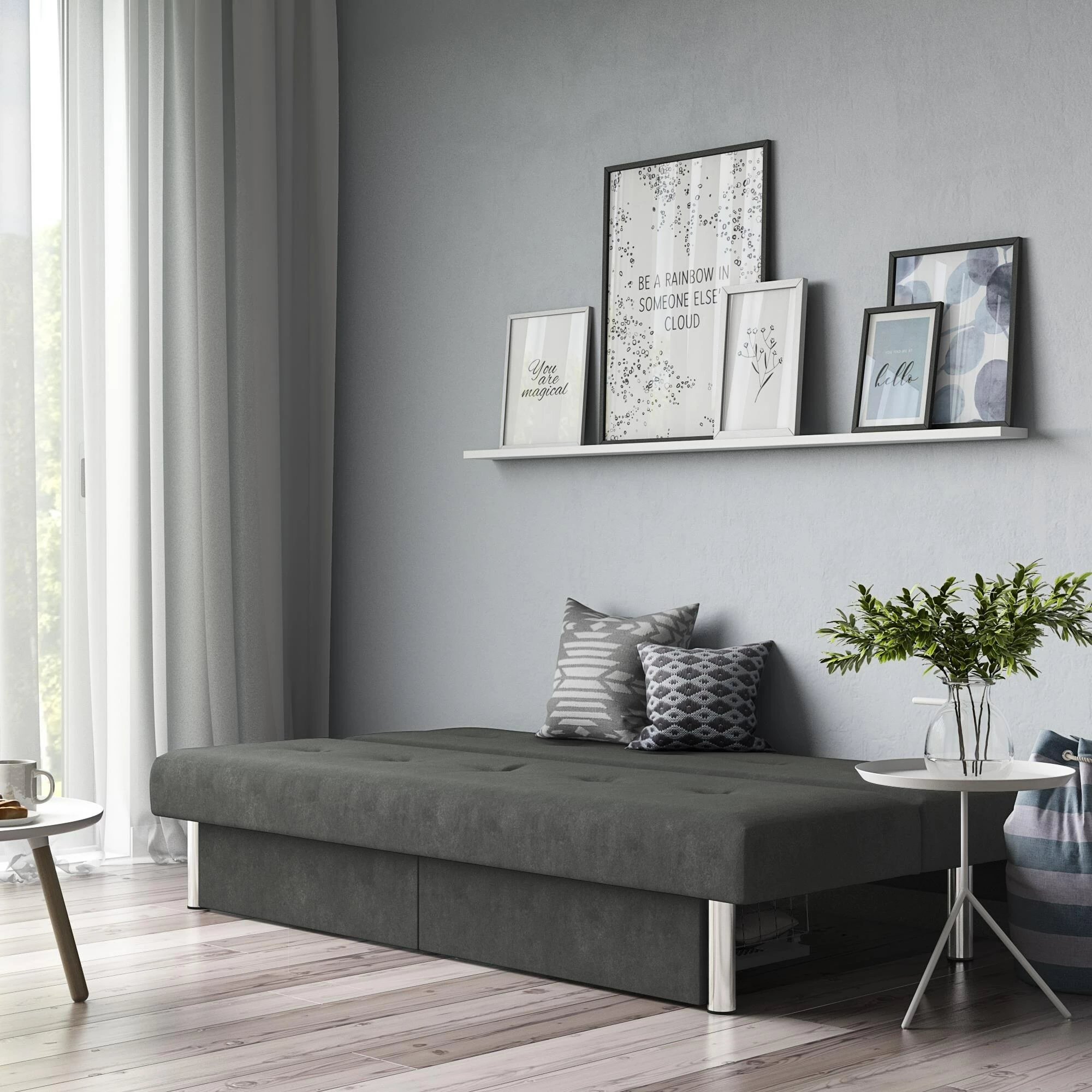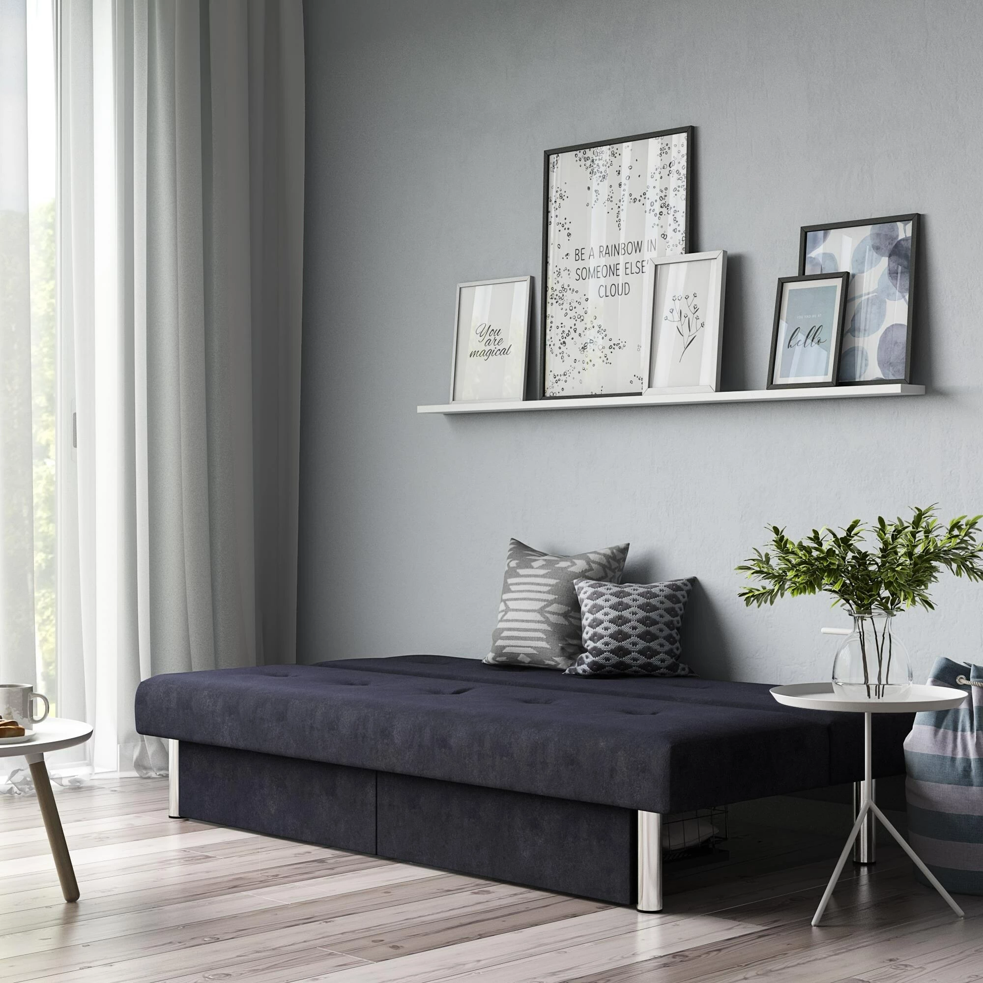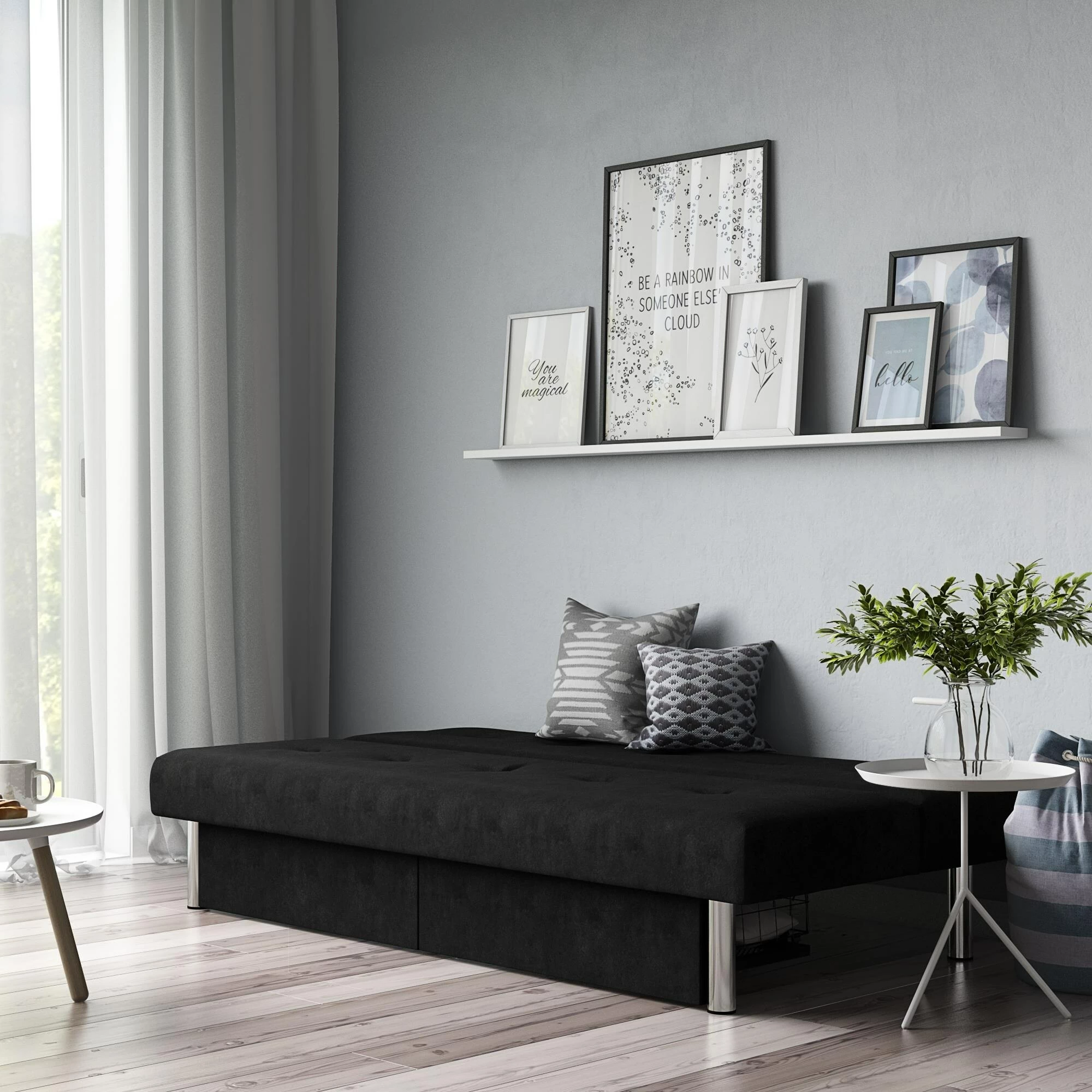 - Effortless futon-to-sleeper mechanism