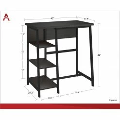 - Keep your work organized with a large work surface capable of holding your laptop, pen and pencil holders as well as any family photos you may want to display. The Desk features 3 open shelves angled to create an A-frame look and is perfect for storing books, notepads, and paper