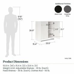 - The Wall Cabinet with Hanging Rod ships flat to your door and 2 adults are recommended to assemble.