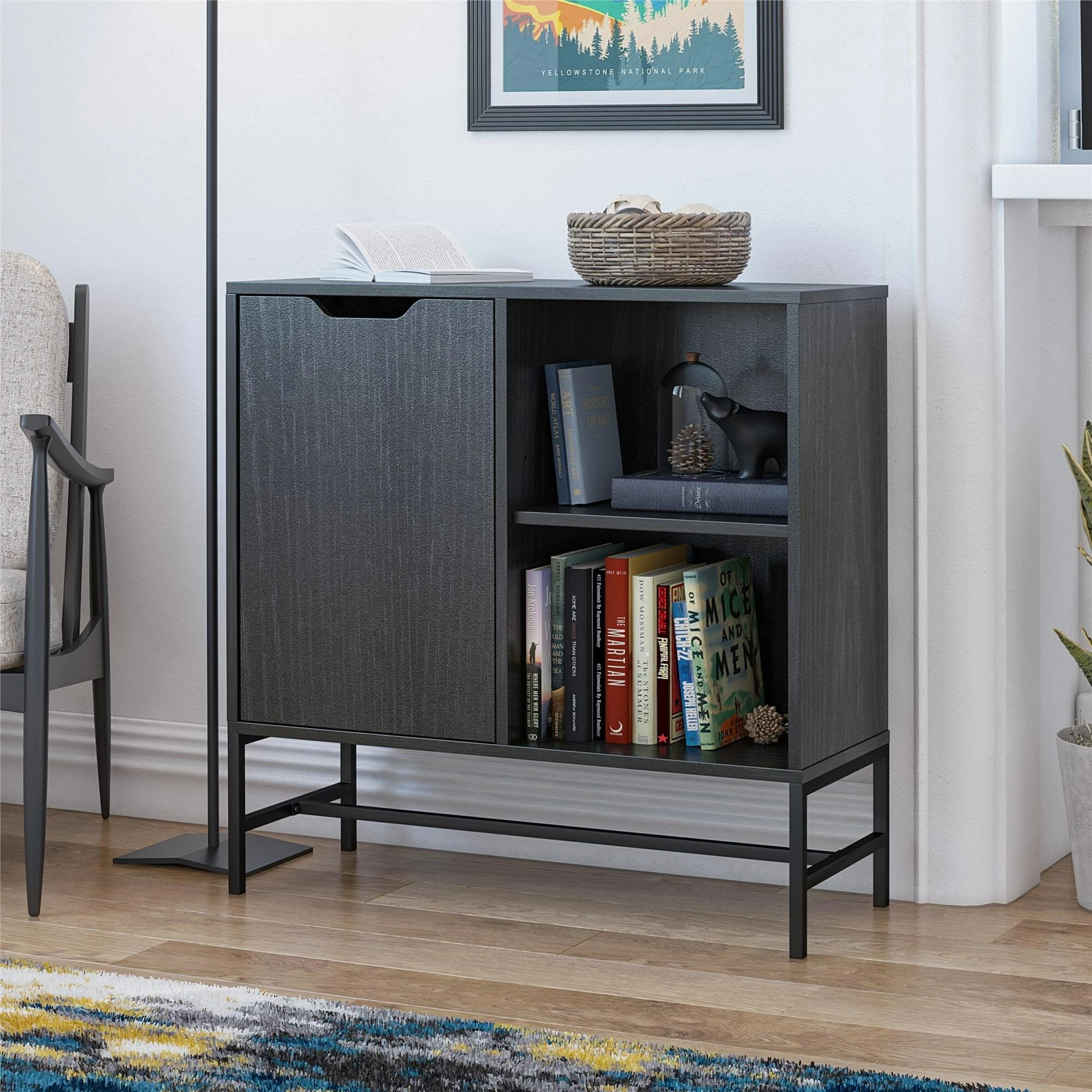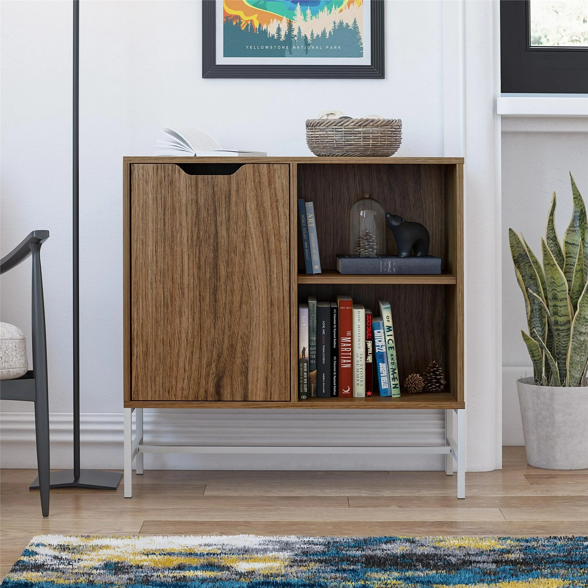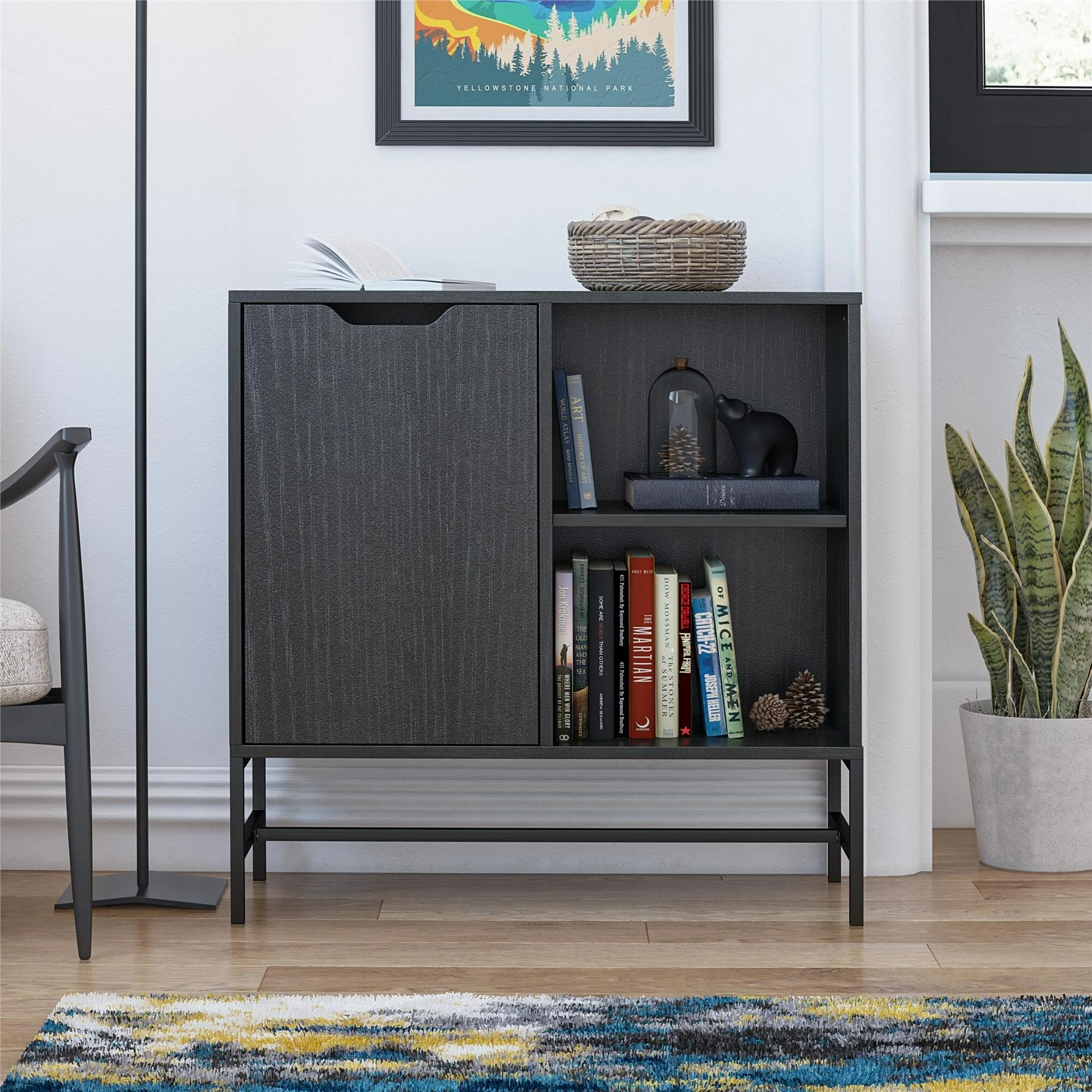 Add a modern feel to your home with the Avenue Greene Wardlaw Bookcase. Clean lines and a cutout handle make this bookcase a must have in any space. With the open and closed concept, you get the best of both worlds in one stunning piece. Organize your favorite books or display collectibles on the 2 open shelves, then tuck away anything you want to keep out of sight behind the cabinet door. The Wardlaw Bookcase is made from durable MDF and sturdy powder coated metal, and ships flat to your door in one box. Once assembled, the Bookcase measures to be 30″ W x 30″ H x 12″ D. Assembled weight: 35.2 lbs.