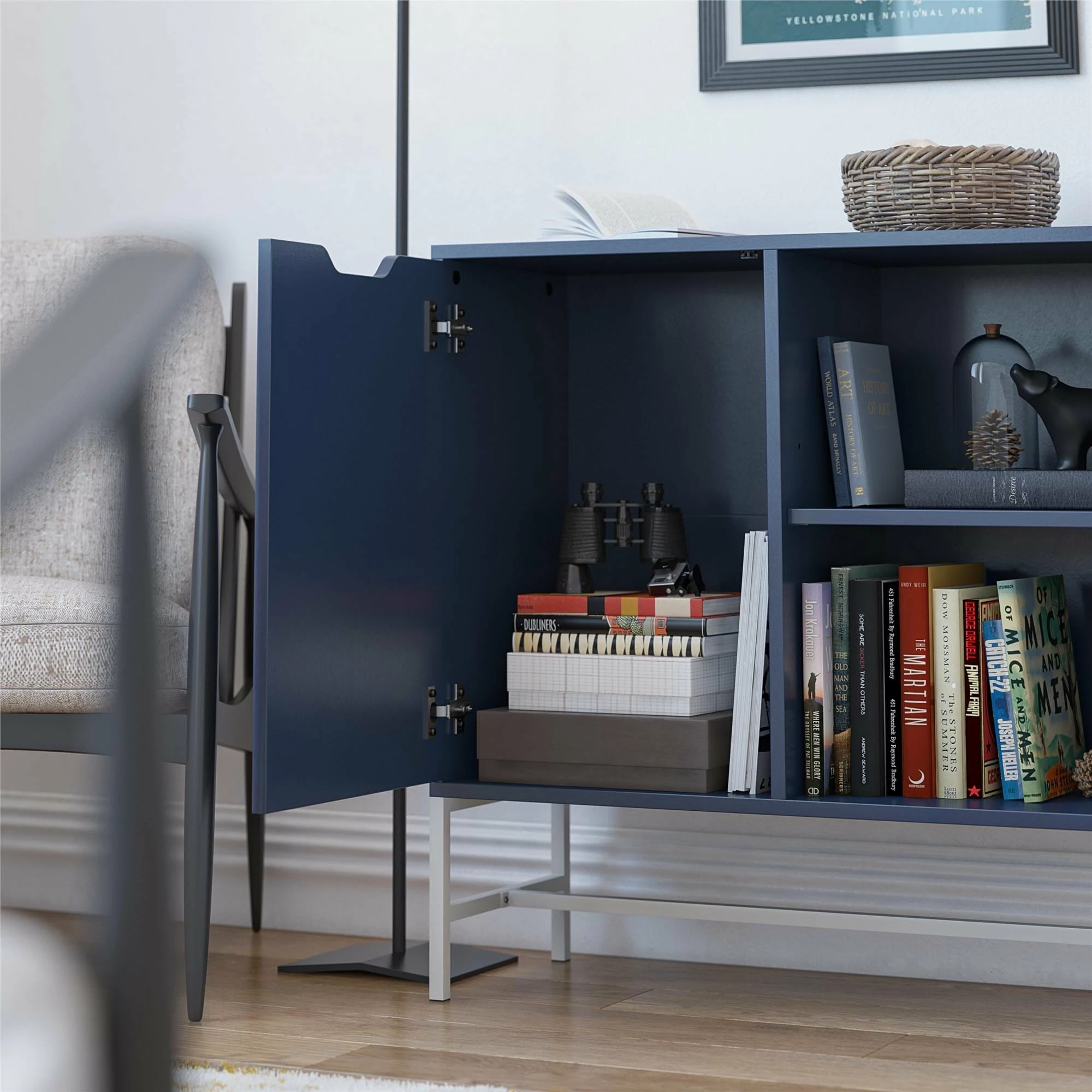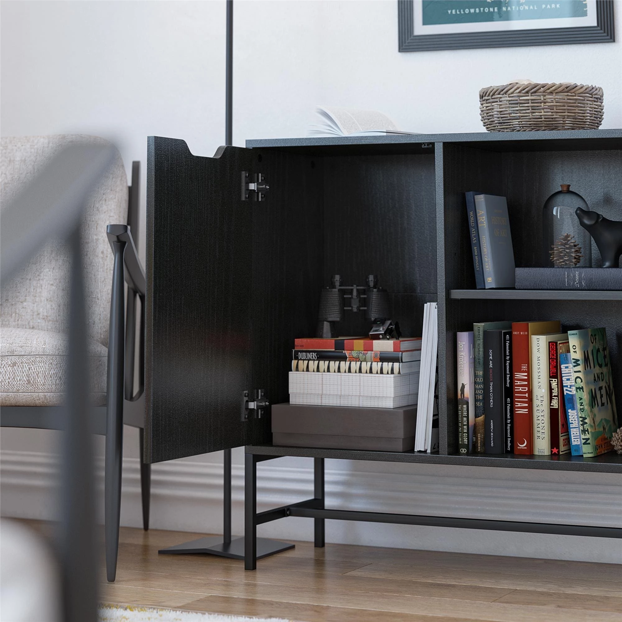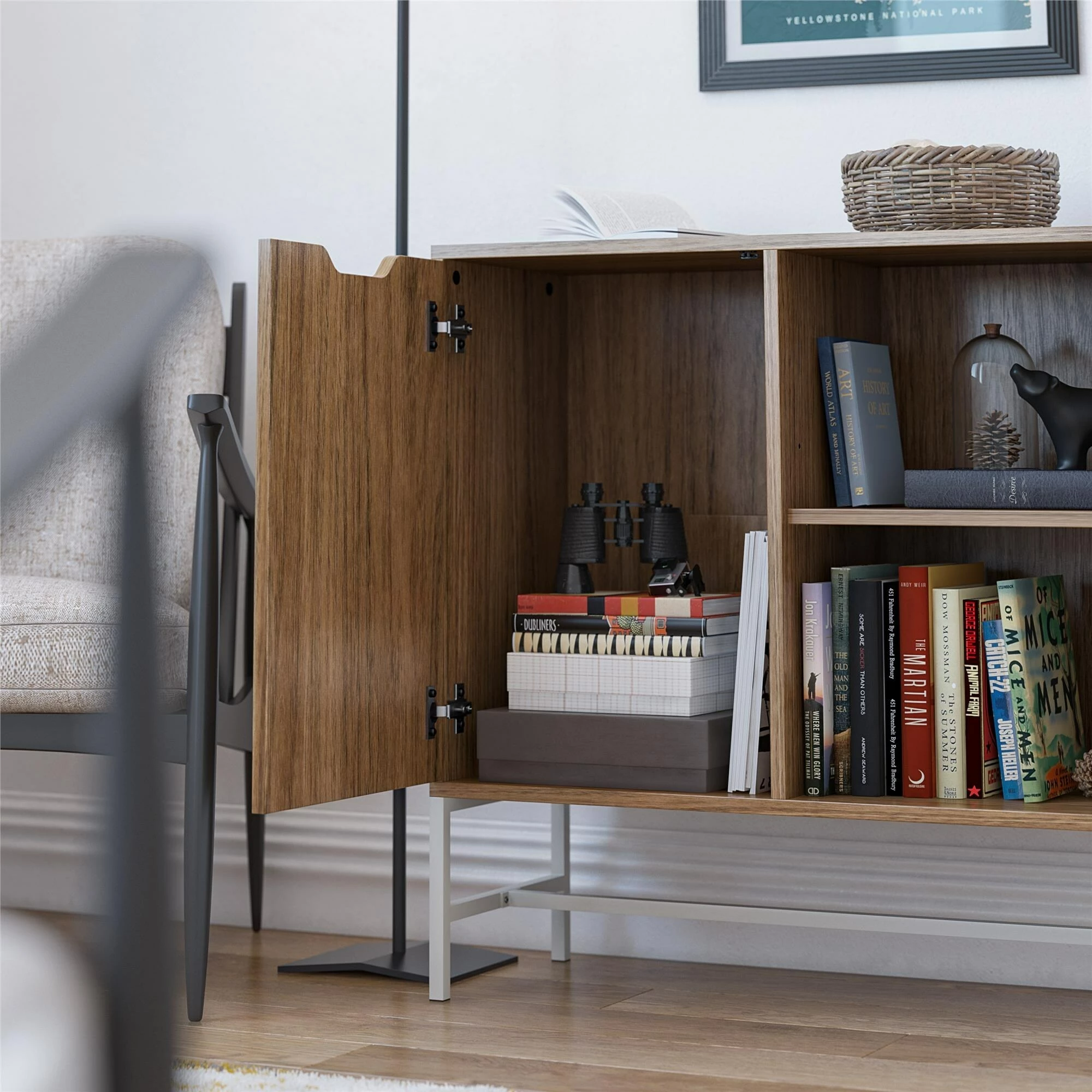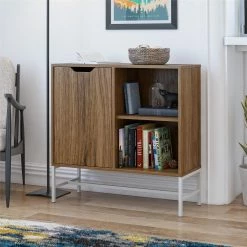 Add a modern feel to your home with the Avenue Greene Wardlaw Bookcase. Clean lines and a cutout handle make this bookcase a must have in any space. With the open and closed concept, you get the best of both worlds in one stunning piece. Organize your favorite books or display collectibles on the 2 open shelves, then tuck away anything you want to keep out of sight behind the cabinet door. The Wardlaw Bookcase is made from durable MDF and sturdy powder coated metal, and ships flat to your door in one box. Once assembled, the Bookcase measures to be 30″ W x 30″ H x 12″ D. Assembled weight: 35.2 lbs.