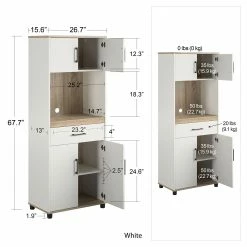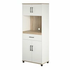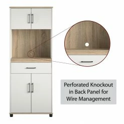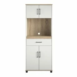 Skip the expensive coffee shops and bring it all home with your Wellington Coffee Bar by Avenue Greene. The coffee bar features rustic white on oak finishes and clean modern farmhouse hardware. Simple, yet essential in your home office or kitchen, with space to store everything you need to make the perfect cup of Joe. Carefully crafted with modern European style hinges, adjustable shelving, and durable side mounted drawer slides for lasting enjoyment. Pair your new coffee bar with the matching Wellington Pantry to gain nearly an additional 13 cubic feet more storage space, creating the perfect kitchen combo. Assembled product measurement: 67.68″ H x 26.69″W x 15.55″ D Assembled weight: 90 lbs. Upper Storage Dimensions: 25.2 ” W x 12.3 ” H x 14.7″ D, Middle Storage Dimensions: 25.2″ W x 12.3″ H x 14.7″ D, Lower Storage Dimensions: 25.2″ W x 24.6″ H 14.7″ D