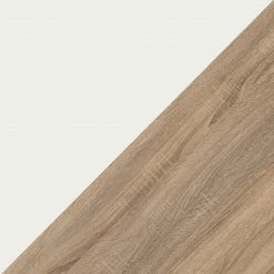 - Rustic White on oak finish and clean matte black modern farmhouse hardware