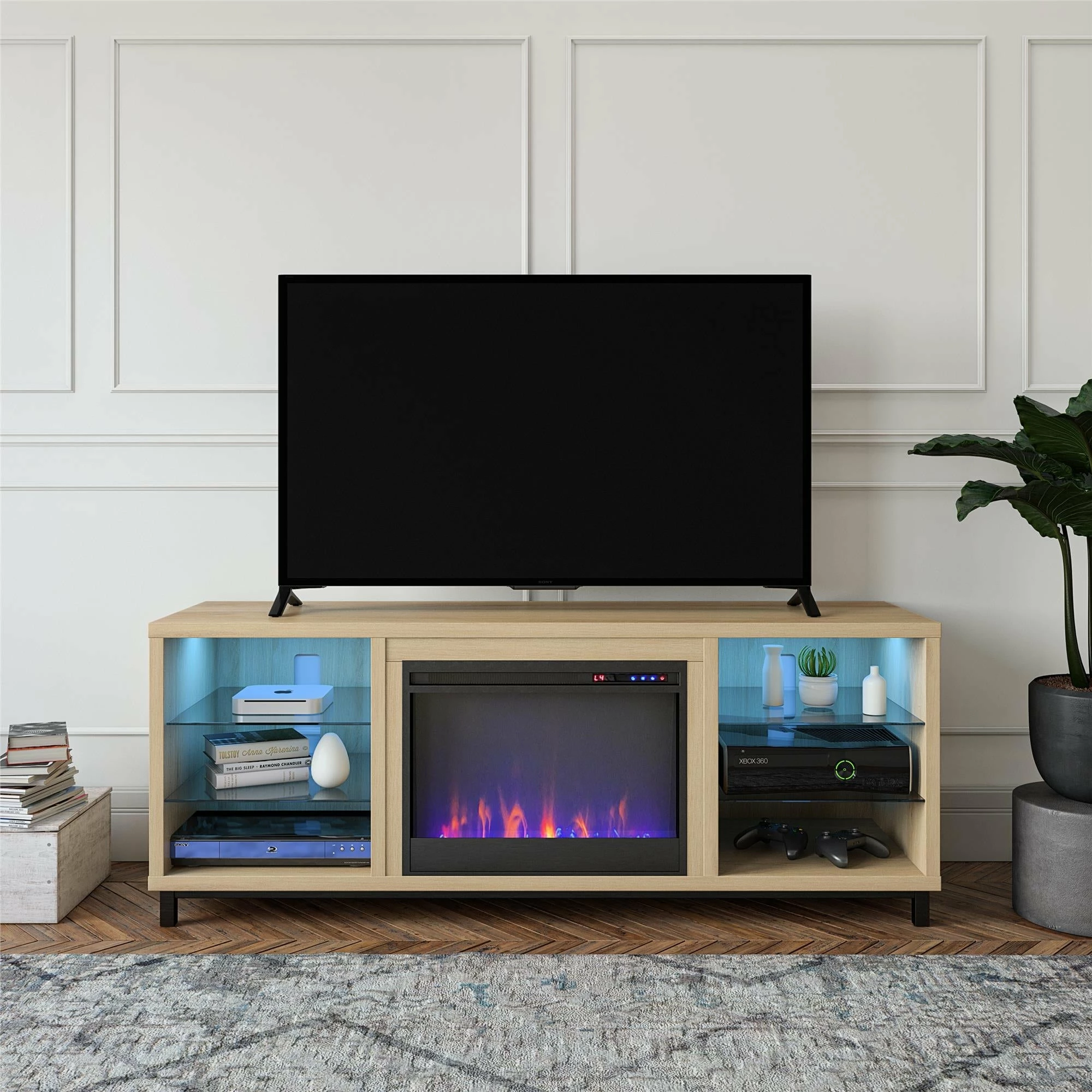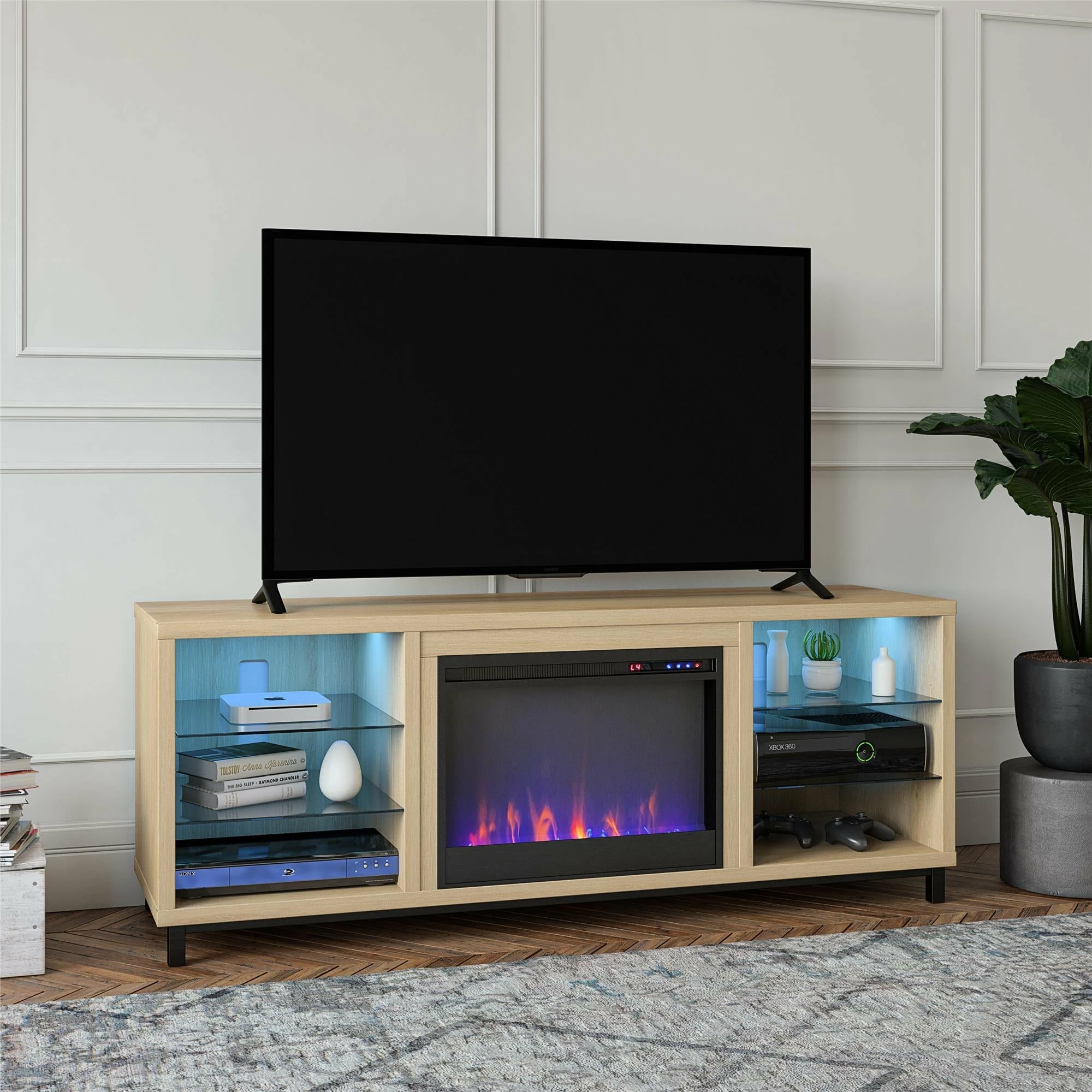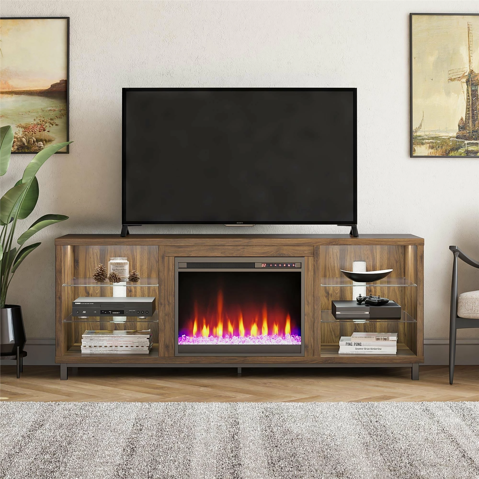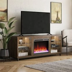 - Avenue Greene Westwood Fireplace TV Stand includes a 23” wide fireplace insert and can hold flat paneled TVs up to 70” wide with a maximum weight of 120 lbs.